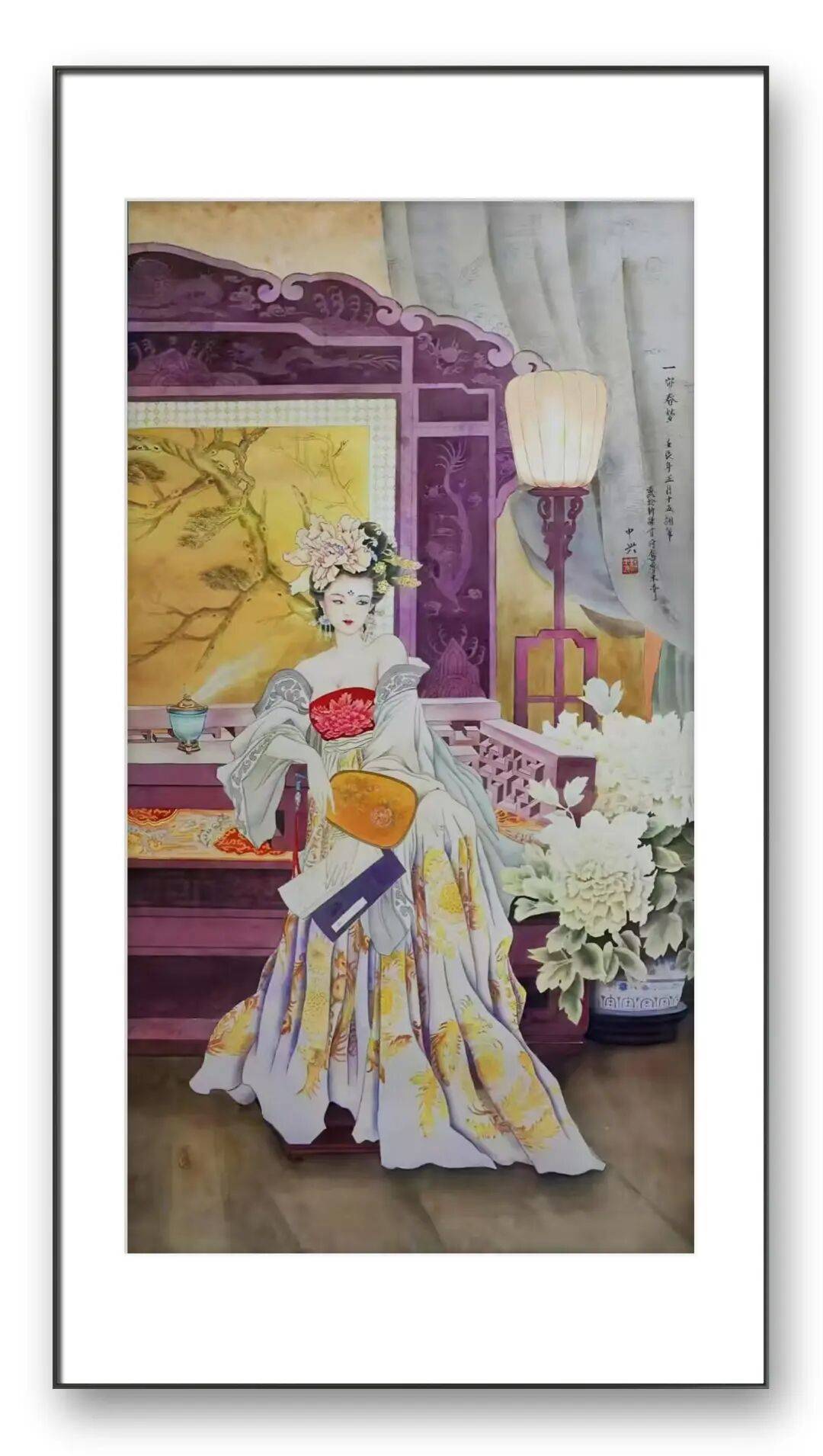 如果说笔墨是杨中兴牡丹花鸟画的骨架,那么意境的营造则是其作品的灵魂。中国花鸟画历来强调“外师造化,中得心源”,主张画家在观察自然的基础上,将个人的情感与感悟融入作品之中,营造出情景交融的艺术境界。杨中兴深谙此道,他常年深入牡丹产地,细致观察牡丹在不同季节、不同天气下的形态变化,从牡丹的含苞待放到盛放凋零,都了然于心。但他并未止步于对自然牡丹的简单复制,而是在观察的基础上进行艺术提炼与升华,将个人的人生感悟与文化情怀融入作品之中,使笔下的牡丹超越了自然物象的范畴,成为情感与精神的载体。