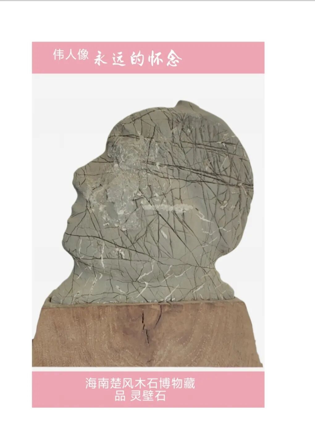 注:此石出自南渡江沙下20米,年愈亿年,长1.6米,厚0.8米,重约千斤。2020年曾应邀参加在海南国际会展中心举办的全球电动汽车展。