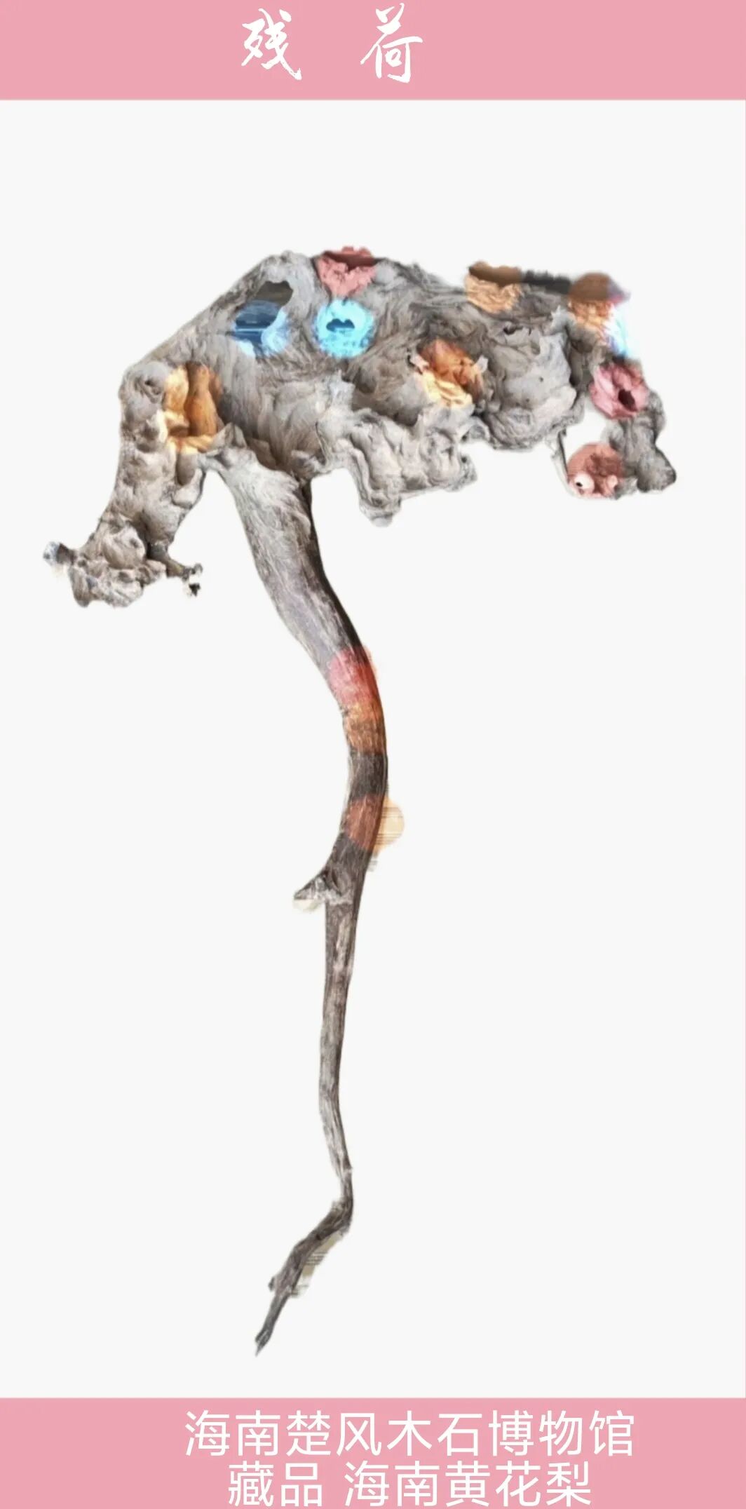 注:此作出自海南的母亲河南渡江,天然古沉木,未动一刀一剪。2015年曾参加第二届海南省艺术节,荣获省政府颁发银奖。