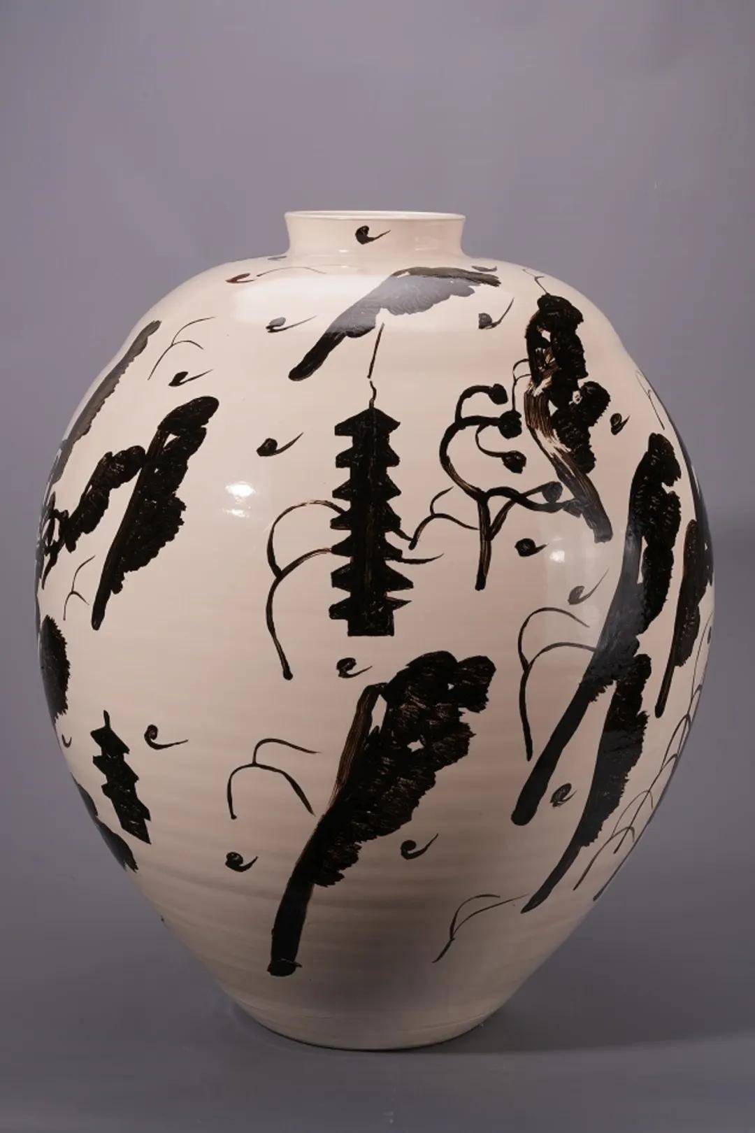 磁州窑传统是艺术家重要的精神来源。其民间性的松弛、自由的书写性,以及在简洁黑白中形成的视觉强度,都在忻省江的作品中得到延续与再创造。他以此为基础,将装饰视为一种行动、一种持续生成的能量,而非附着于器表的图像。
