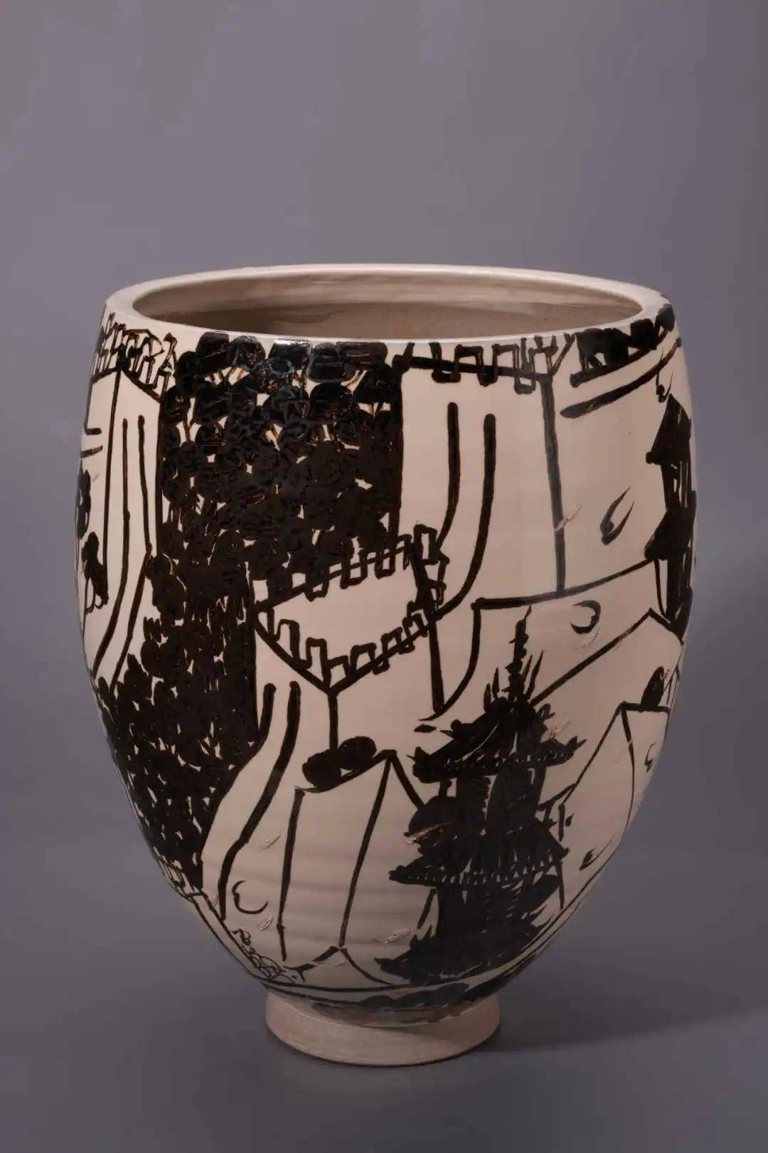 有城垣的高钵 磁州窑白地黑绘 39.5×31.5×31.5cm 2025年