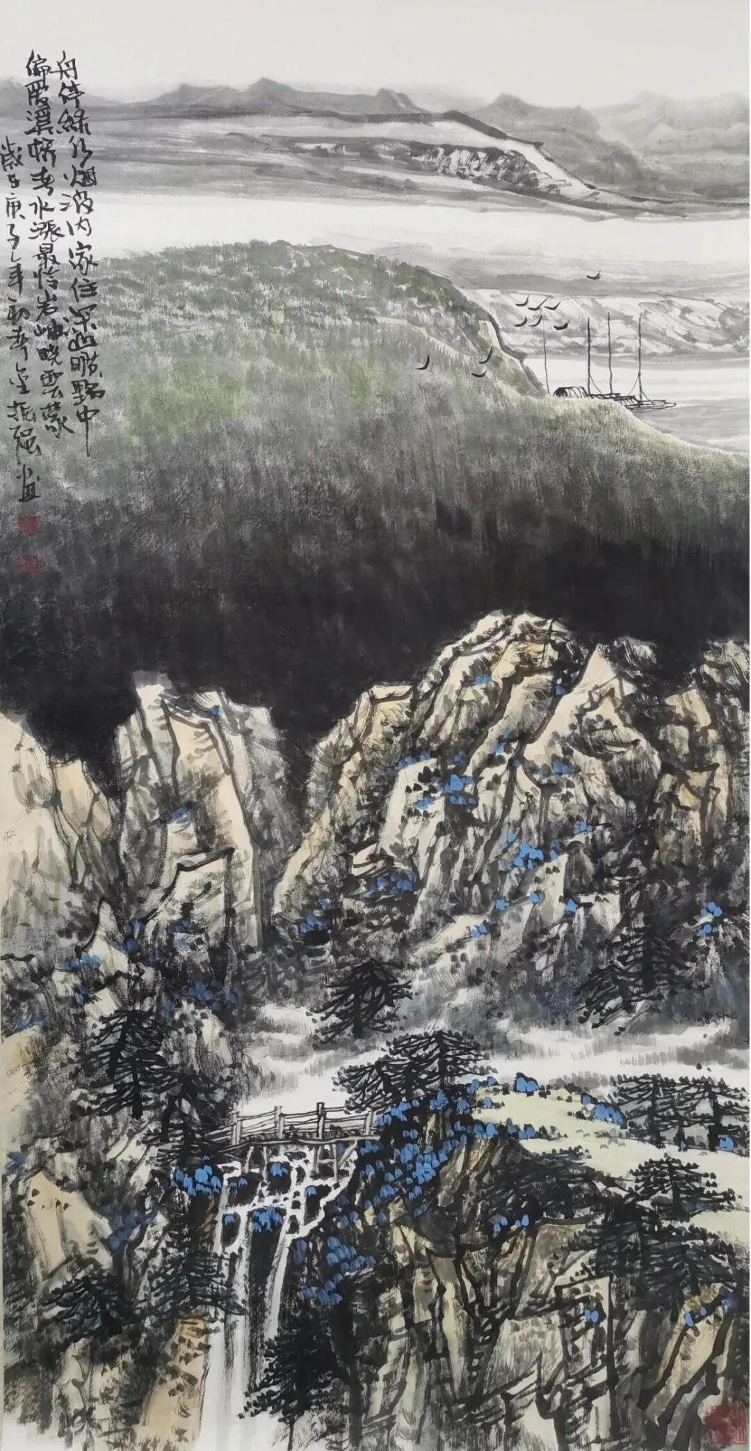 金振强 1968年生于黑龙江鸡西,97年移居威海。现为中国生态画院画家,山东省优秀美术指导教师,威海市美术家协会理事,环翠区美术家协会副主席。师从贾平西、牟成、徐生华先生,擅画山水偶作花鸟,在继承传统笔墨的同时不断探索创新,追求内观自省的境界,寻找不失国画之根本的新水墨山水。