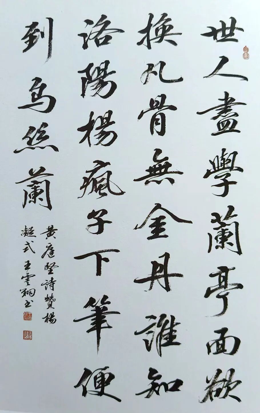 他的书法追求法度严谨,又仰望笔墨的灵动,辩证统一地在楷书创作中先生取法欧体的严谨,兼写颜筋柳骨,展现出对传统法度的深刻把握,结构严谨而不失灵动,笔力遒劲而富有韵味。这种对法度的全能表达,源于对书法艺术的深刻理解与长期的碑帖修炼,唯有临池不辍,才可以写成这一手无可挑剔的金书锦字,书法实力派蕴有真功夫。