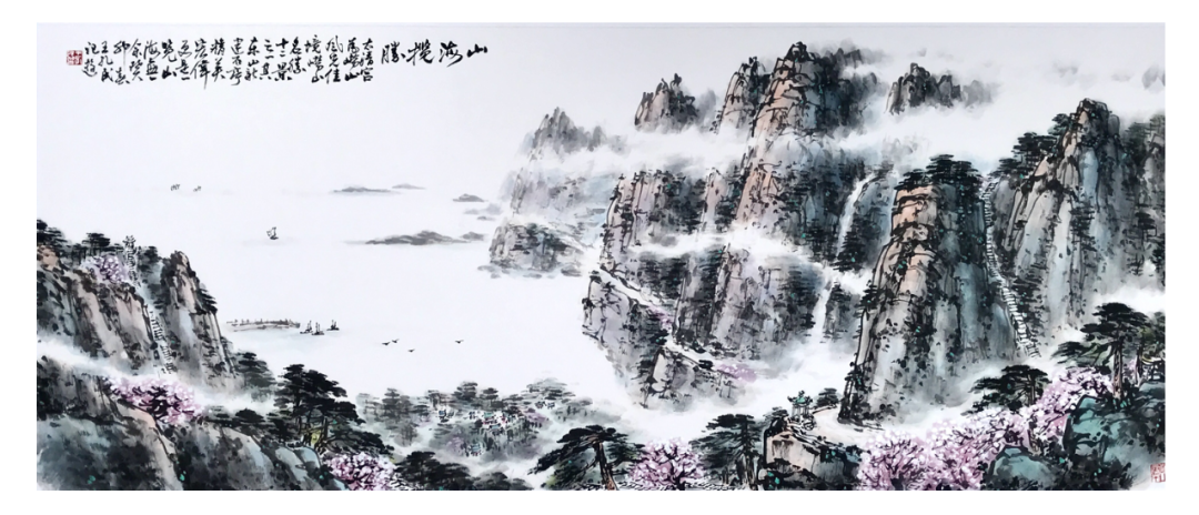 2019年山水画‘海上雄狮’参加青岛市美术馆青岛美术百年美术大展。