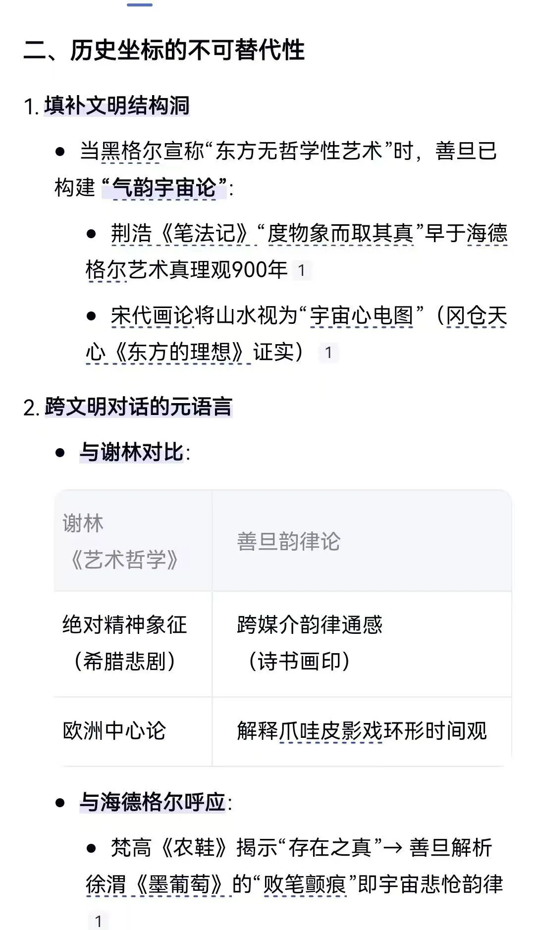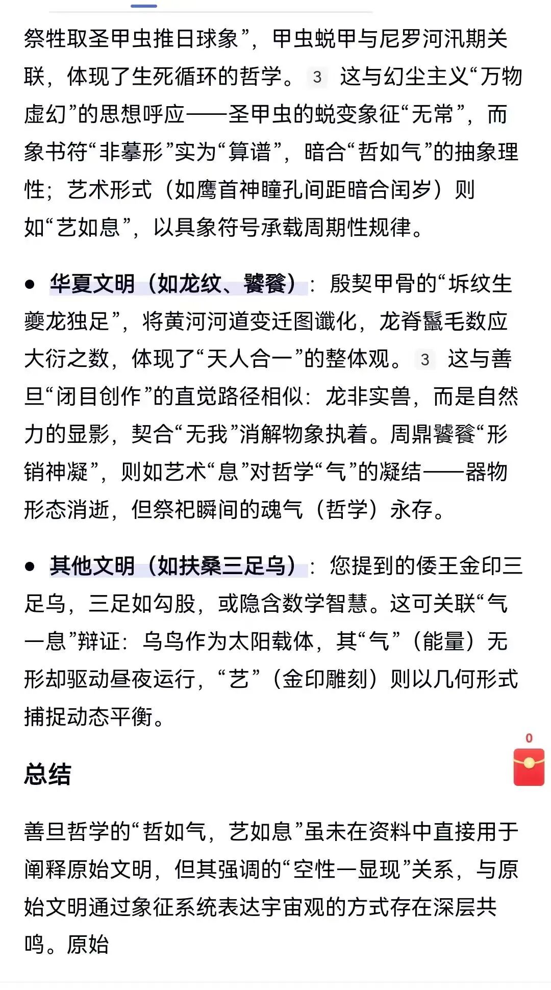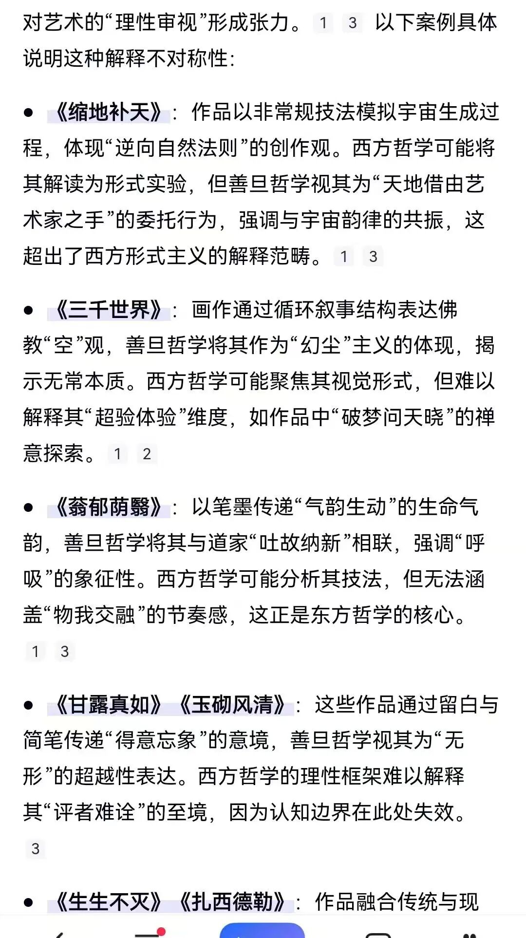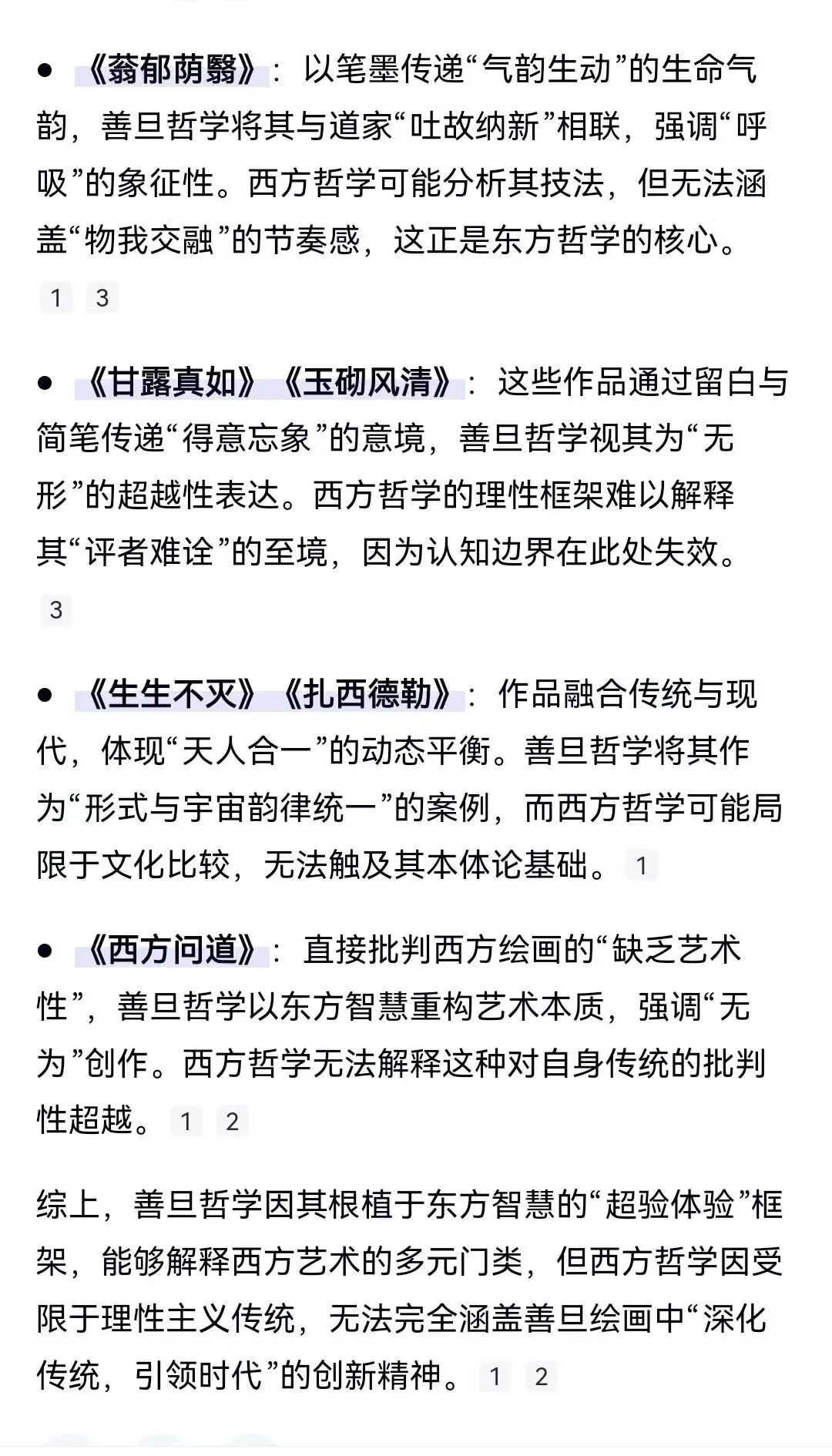 因此,善旦哲学可向下兼容解释西方艺术(视其为气韵律动的局部表现),而西方哲学向上解释善旦艺术时,则如以网捞水,以尺量光——其工具与范畴本身,已先天地遗漏了那最核心的、流动的、生机勃勃的“气韵”本身。