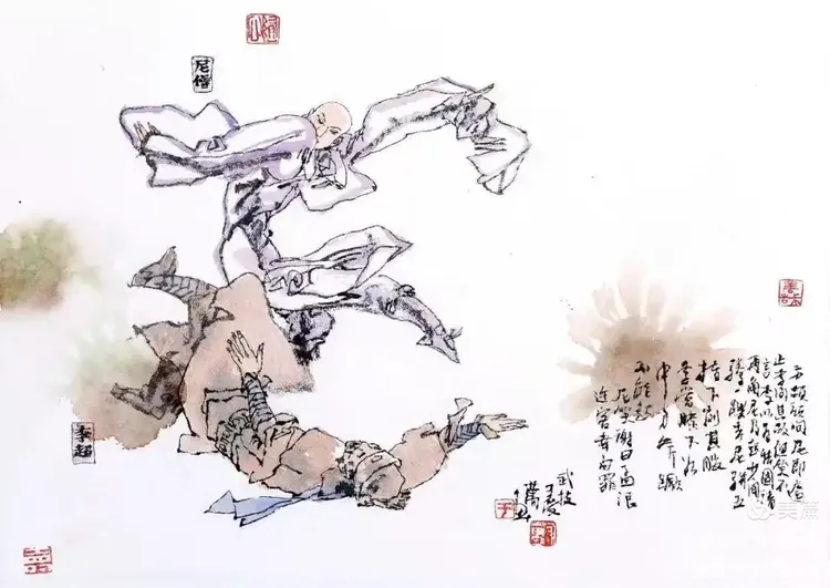 李郎虎斗气翻腾,尼袖轻收势若冰。