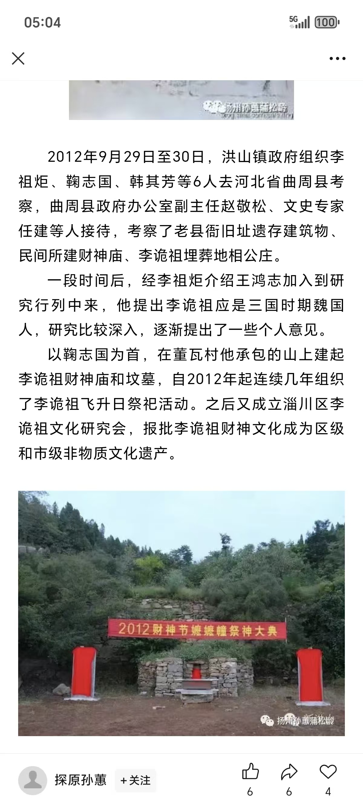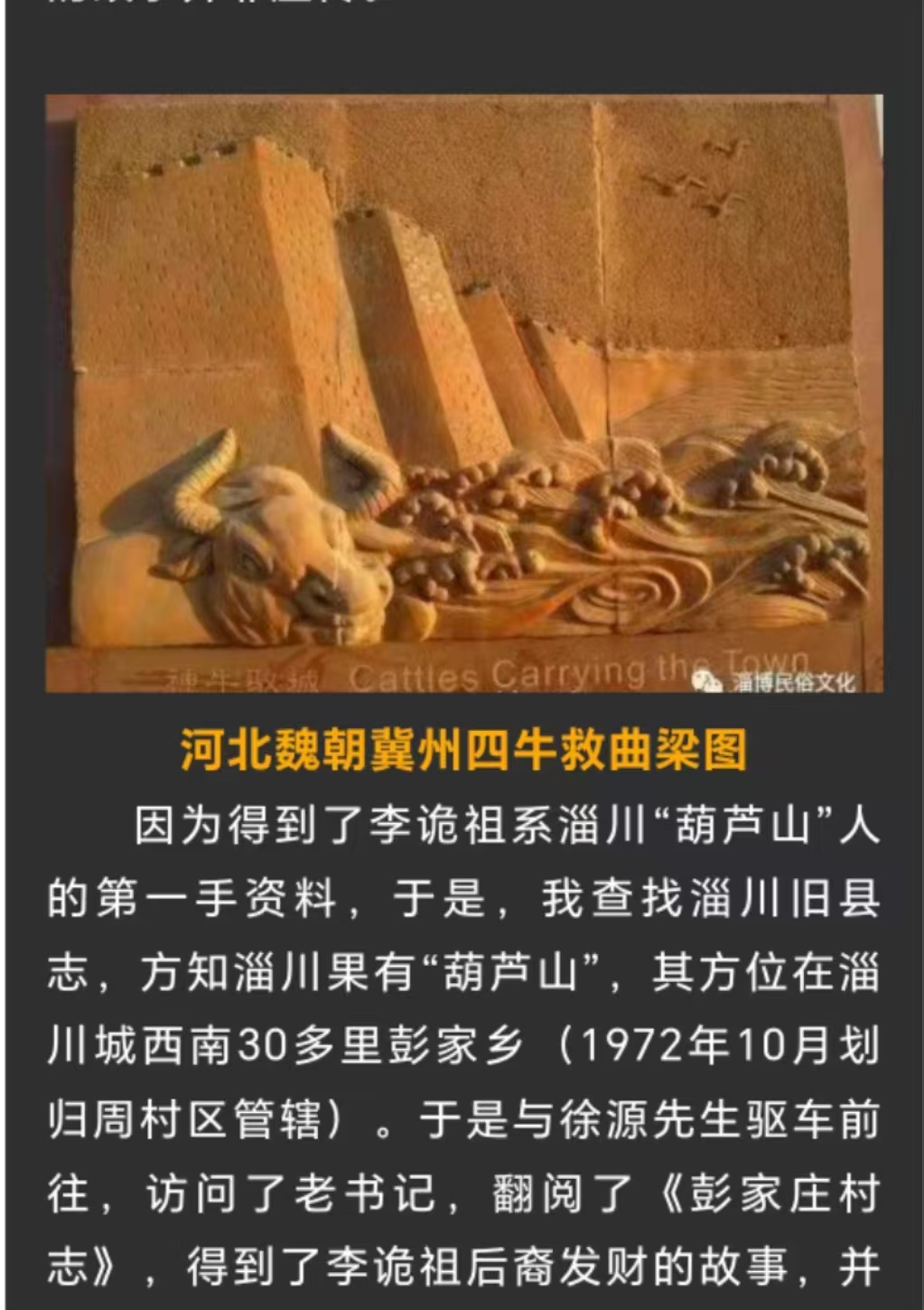 曲梁文化学者和民间传说,认定李诡祖是“淄川葫芦山人”“淄博西部人”。
