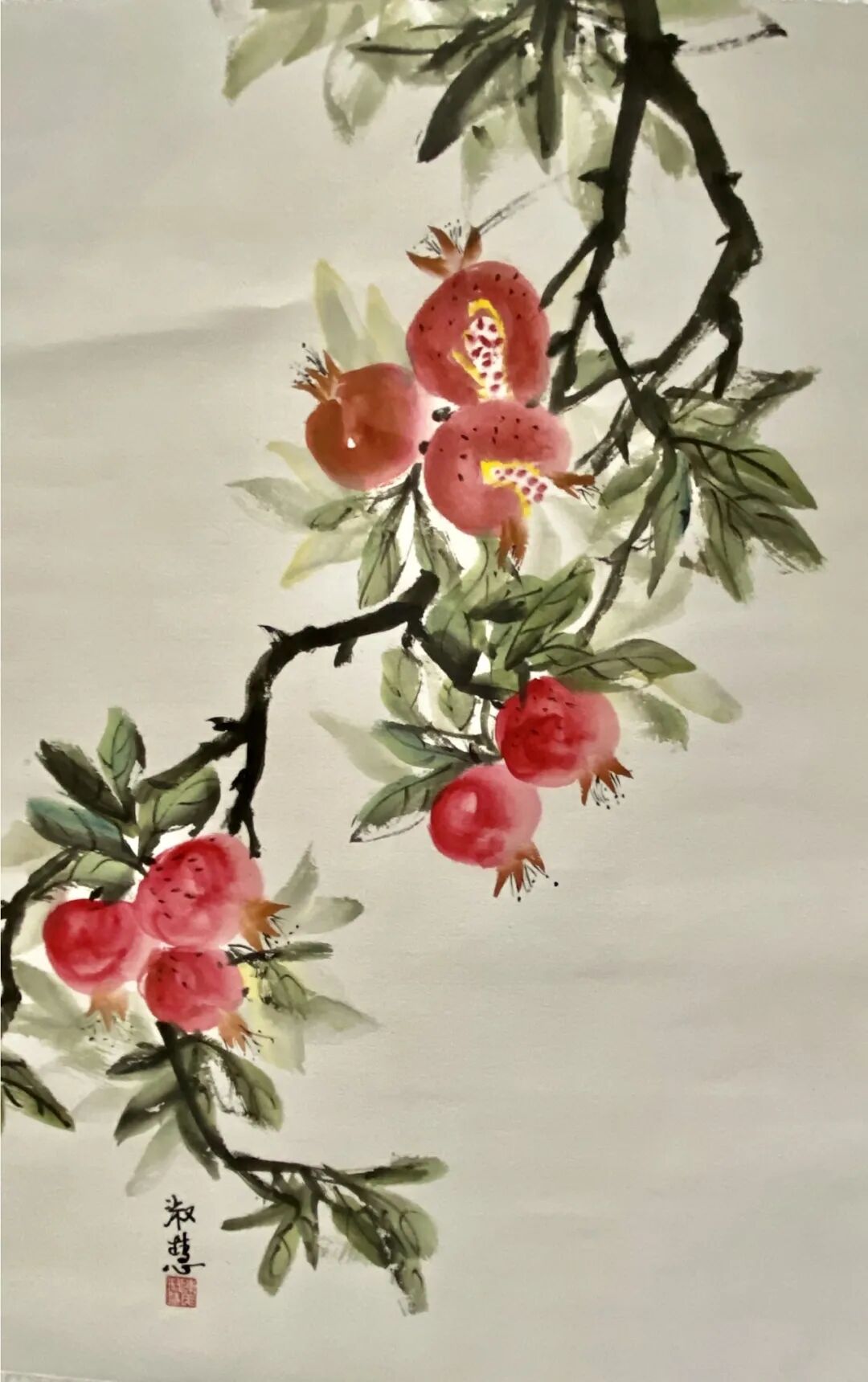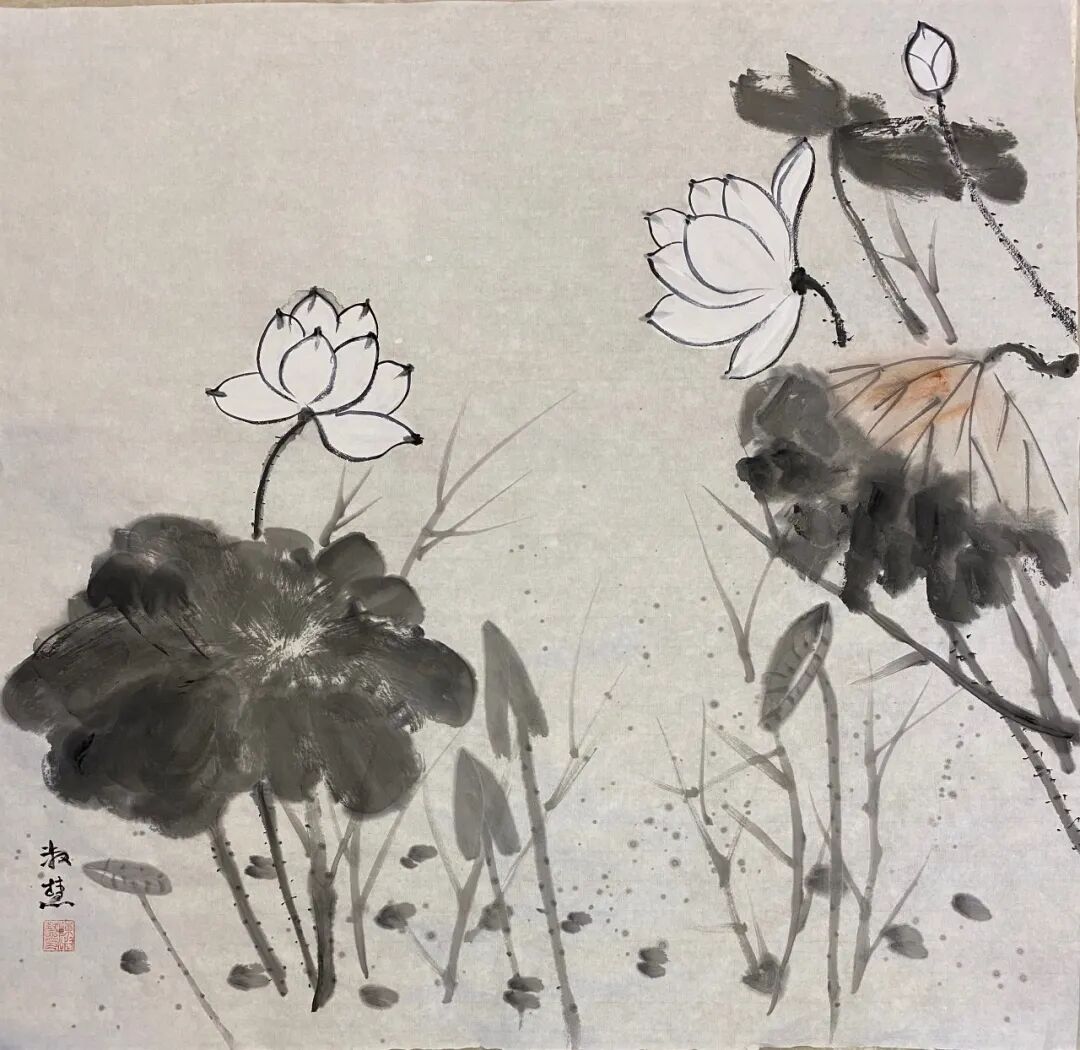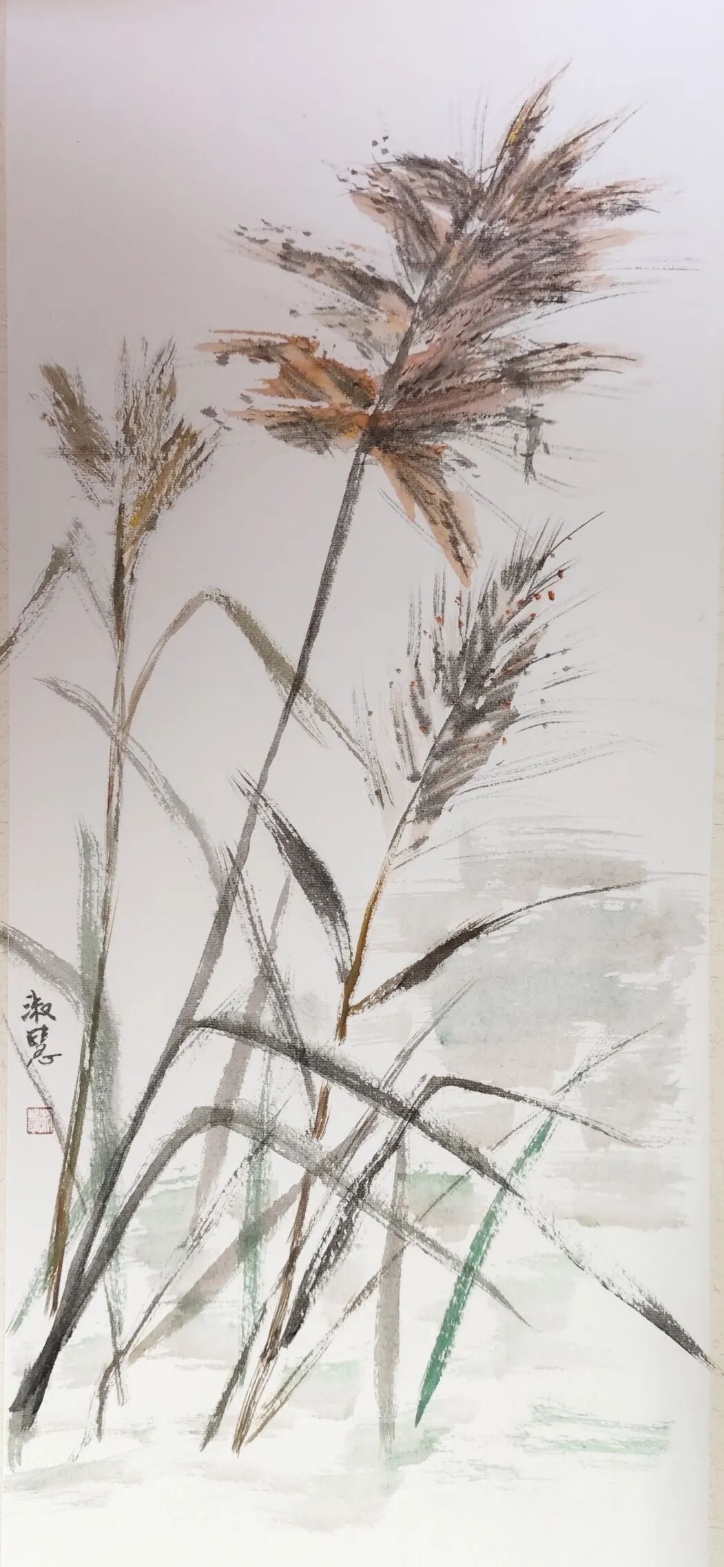 她的作品注重从自然中提取素材,以写意笔触描绘花叶草木,善于运用淡雅设色的中国画颜料,通过渐变色调展现大自然的生动语言。欣赏她的画作,能感受到一种与万物心心相印的玄学艺术境界。