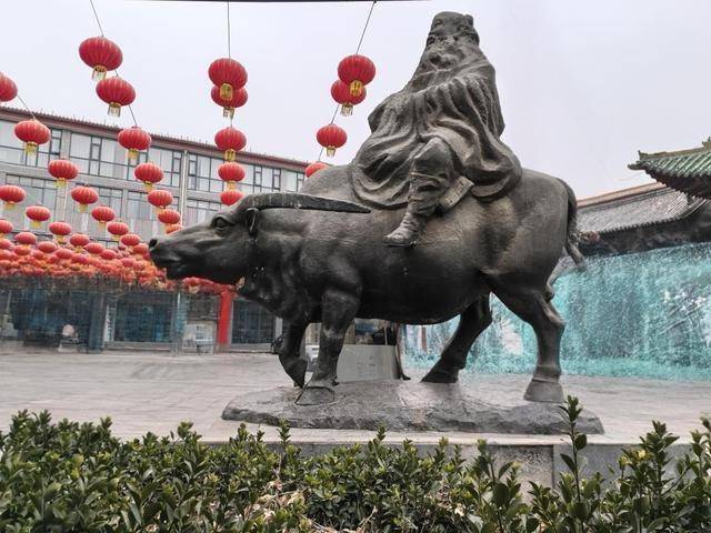 无论老子归隐何处,始终于青牛相伴。青牛成为老子的代名词,老子被称为“青牛师”、“青牛翁”。许多道学、道教圣地,都有青牛雕塑或老子骑青牛雕塑、老子出关图、紫气东来图。