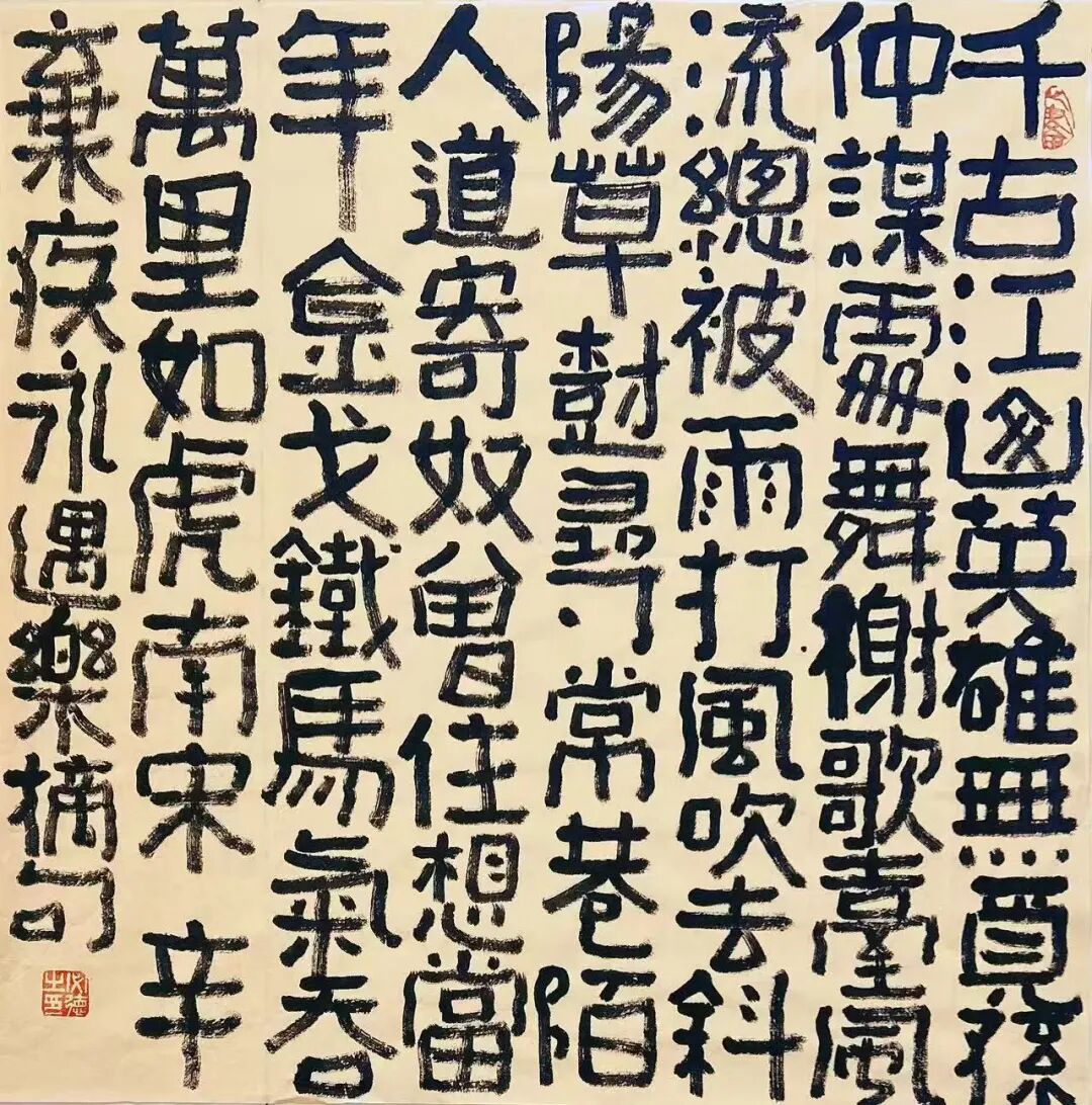 千古江山, 英雄无觅, 孙仲谋处。舞榭歌台,风流总被雨打吹去。斜阳草树, 寻常巷陌, 人道寄奴曾住。想当年,金戈铁马, 气吞万里如虎。