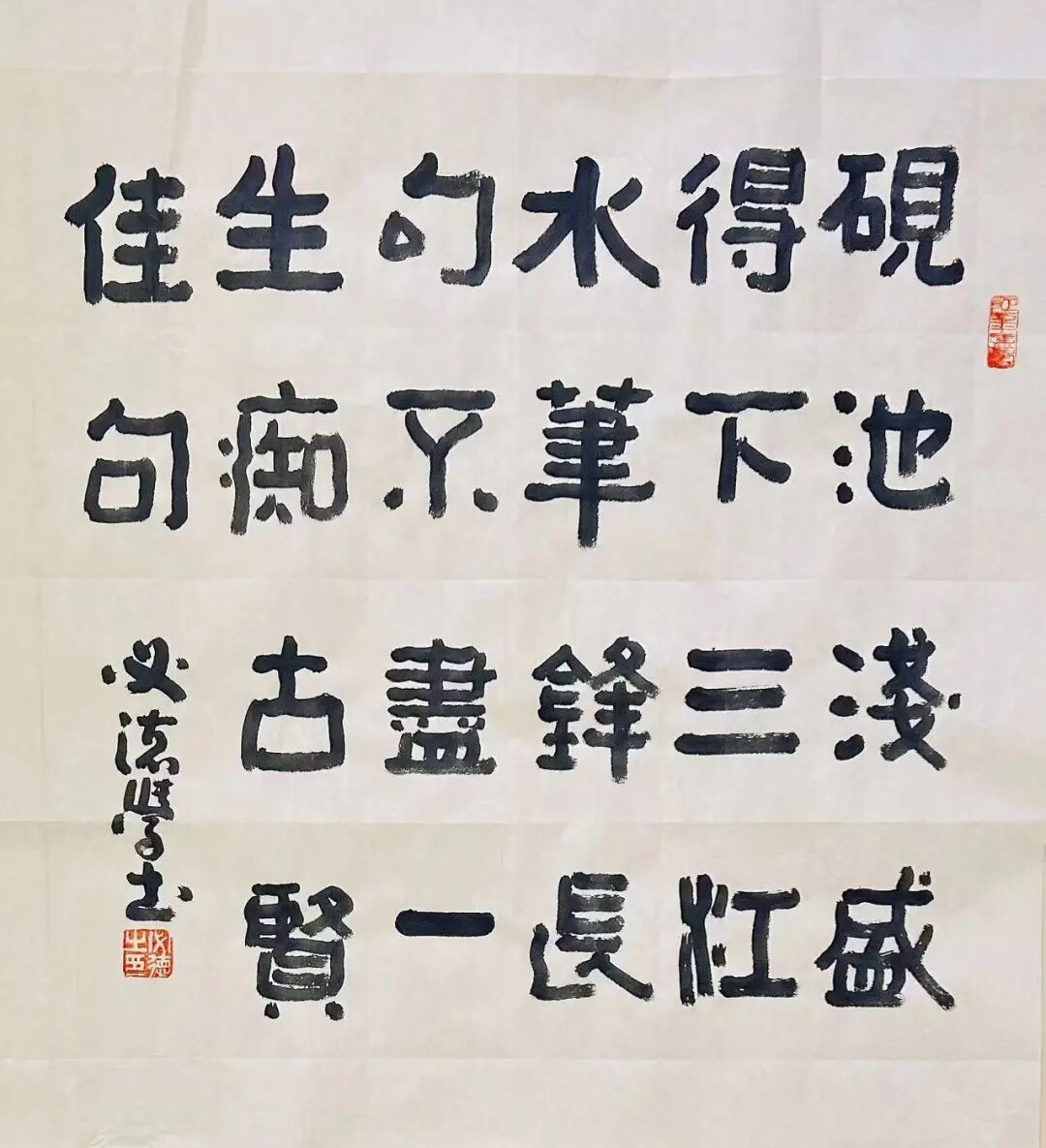 砚池淺盛得下三江水,笔锋长勾不尽一生痴。