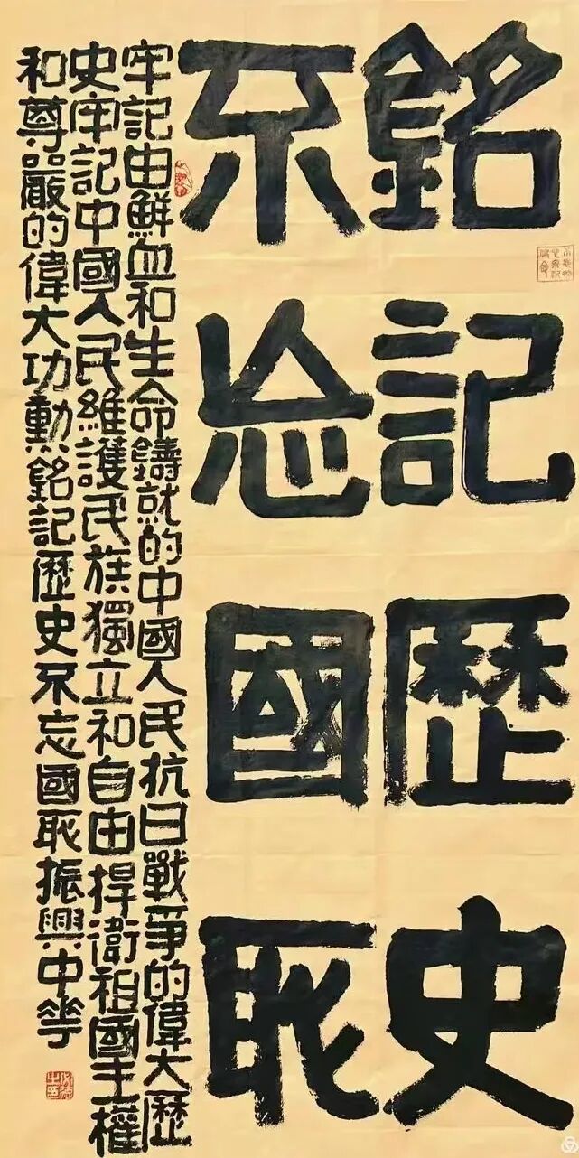 铭记历史 ,不忘国耻。牢记由鲜血和生命铸就的中国人民抗日战争的伟大历史。牢记中国人民维护民族独立和自由、捍卫祖国主权和尊严的伟大功勋。铭记历史、不忘国耻、振兴中华!