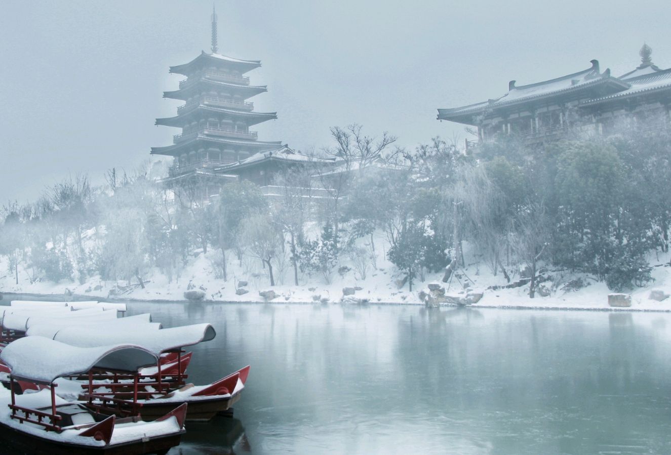惊寰宇,借马寺钟声,叩醒仙寰。遥思武后凭栏,叹万盏宫灯照玉阑。有香山居士,雪醅新酿;天津晓月,霜钟初寒。履迹王侯,舟迷李杜,皆伴铜驼入旧年。回眸处,正太液云收,一白千年。