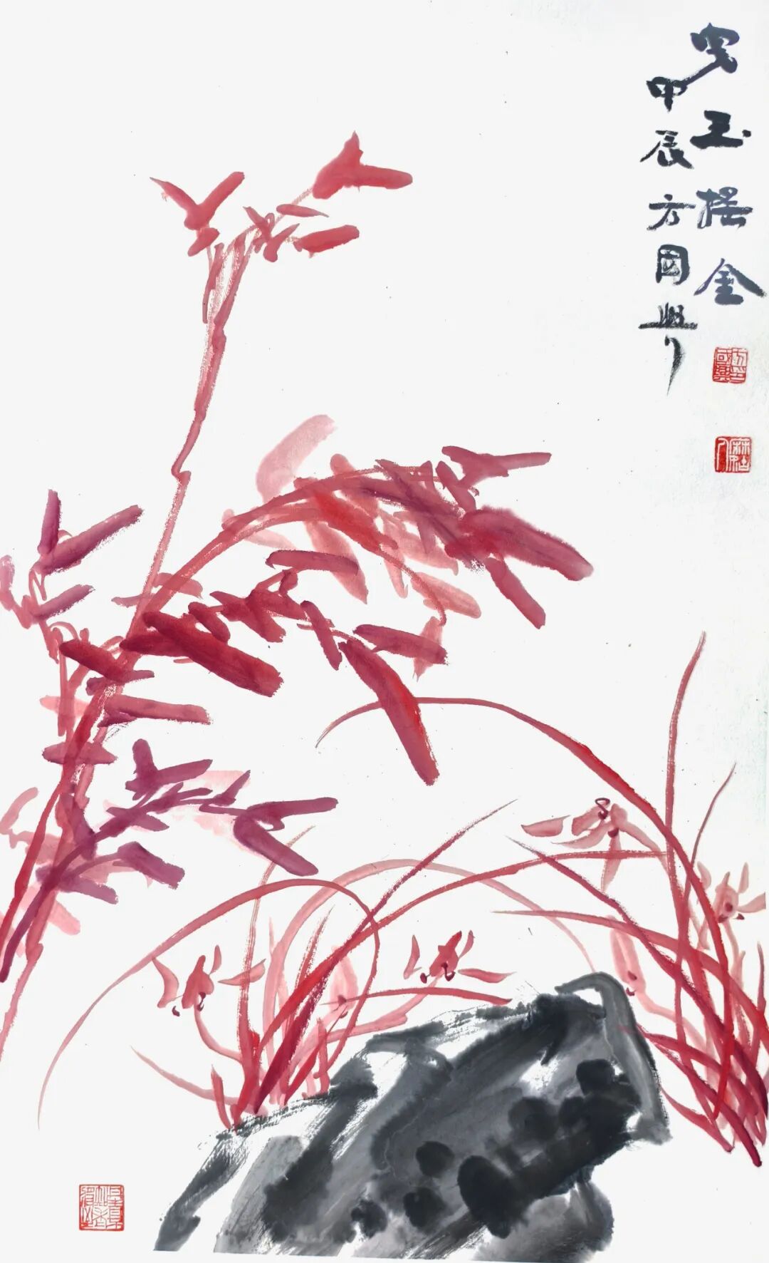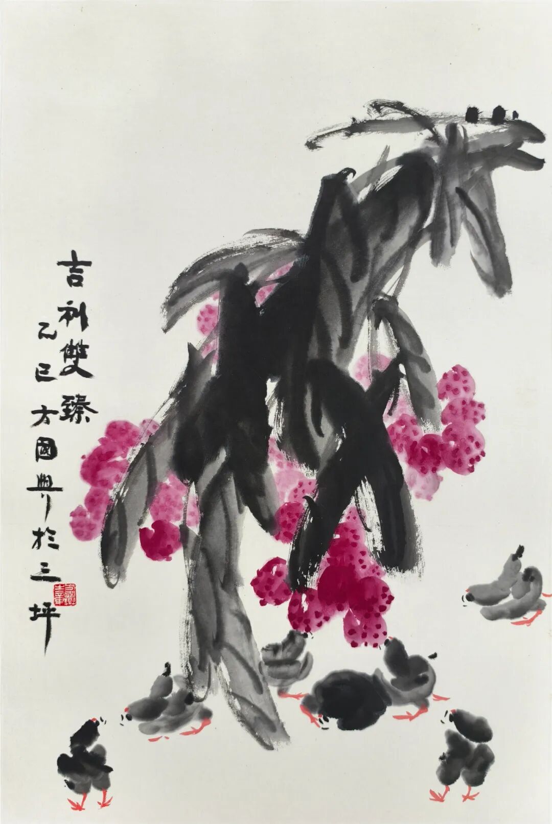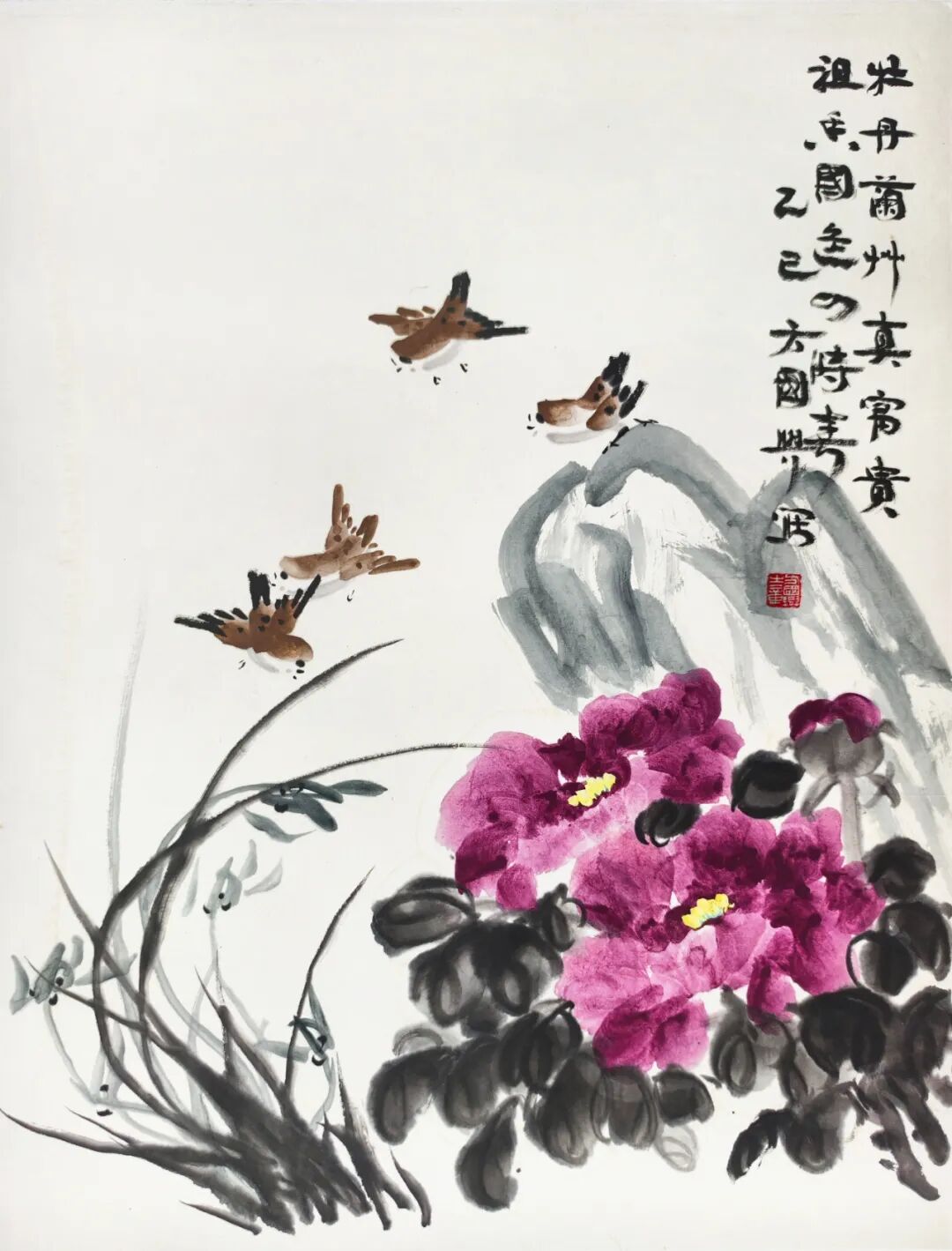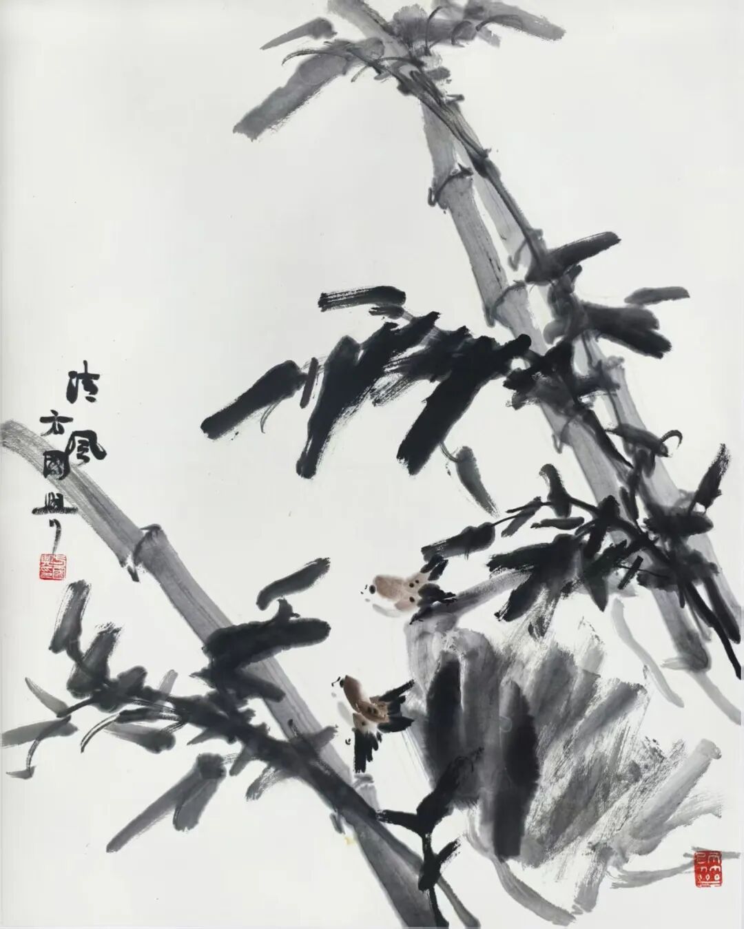 方国兴 1946 年生,江西抚州南城人。有“书画瓷三绝之誉",为当代以“篆隶”书法融于大写意花鸟画的代表人物。