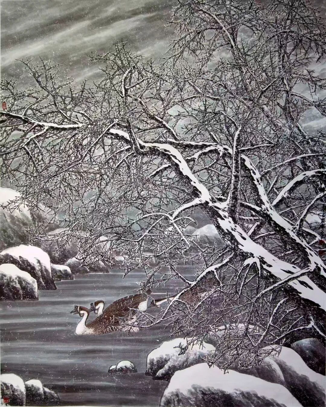 辛守庆先生是当代著名的花鸟画家,是白山画派重要创始人,关东画派代表性画家之一,创建出独具特色的自然景观花鸟画。自幼酷爱书画,曾潜心研习任伯年、吴昌硕、李苦禅诸大师作品,先后受业于高冠华、孙恩同、李巍、王培东等先生。多年来,他以传统为根基,认真求索,主张“艺术当随时代”,对中国画的形式与内容、表现与技巧、神韵与情势做了艰辛的尝试。他以花鸟画及长白山的山石、森林、树木为题材,将个人审美意境及创作感情融为一体,创作了一批气势磅礴,具有长白山地域特色的绘画作品。