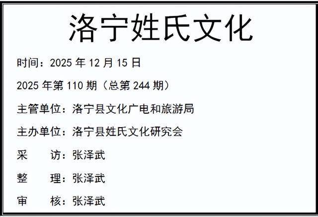 作者简介:张泽武,洛宁县陈吴乡新寨村人,2003年,发起并成功组织成立了洛宁县姓氏文化研究会,担任常务副会长兼秘书长一职,2006年参与组织筹备成立洛阳市姓氏文化研究会,任副秘书长。2017年被推举为洛宁县姓氏文化研究会会长。2024年8月再次当选为洛宁县姓氏文化研究会会长。