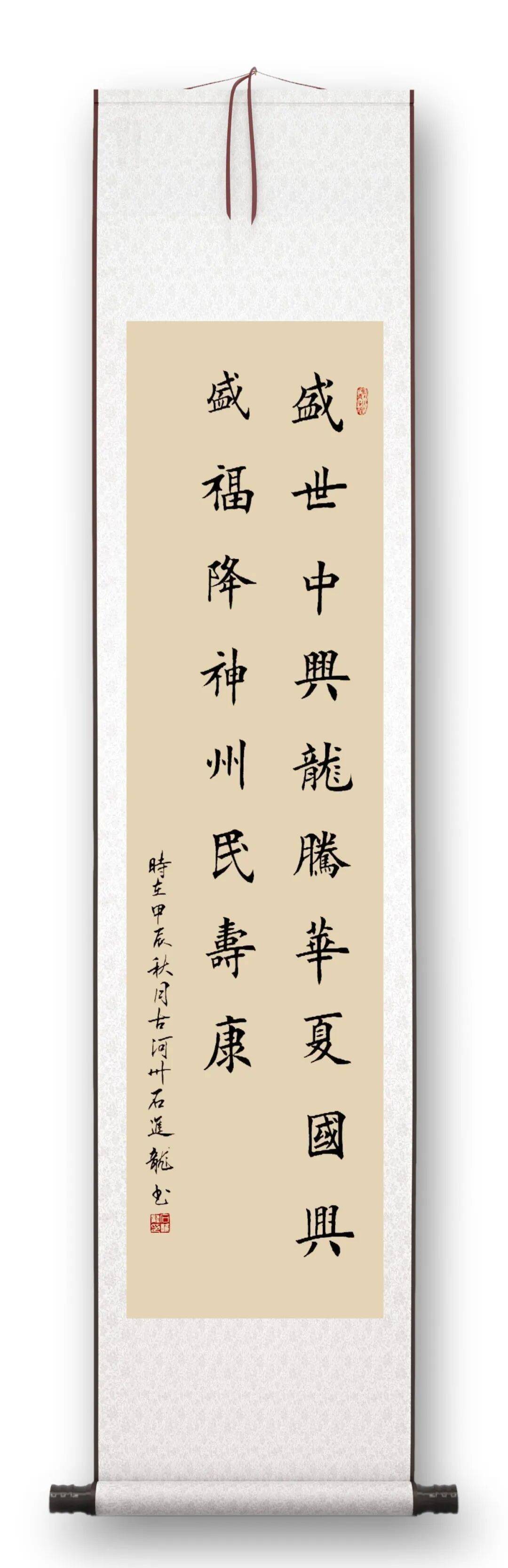 扎实的传统功底是石进龙先生书法艺术的根基所在。书法艺术的传承,历来强调“取法乎上”,唯有深耕传统,方能厚积薄发。石先生深谙此道,数十年如一日沉浸于历代经典法帖之中,从先秦篆隶的古朴雄浑,到汉魏碑刻的端庄厚重,从晋唐行草的飘逸洒脱,到宋元明清诸家的风格意趣,他都一一研习,用心体悟。观其楷书作品,结体严谨规整,笔法精到细腻,横平竖直间尽显端庄大气,既有唐楷欧、颜、柳、赵的法度森严,又融入了自身对字形结构的深刻理解,笔画粗细变化自然,起笔收笔顿挫有力,给人以稳重大气、正气凛然之感。其隶书作品则颇具汉隶神韵,蚕头燕尾特征鲜明,线条古朴遒劲,结体宽博疏朗,将汉隶的雄浑厚重与典雅灵动完美融合,字里行间透着一股古朴自然的气息。