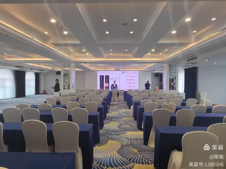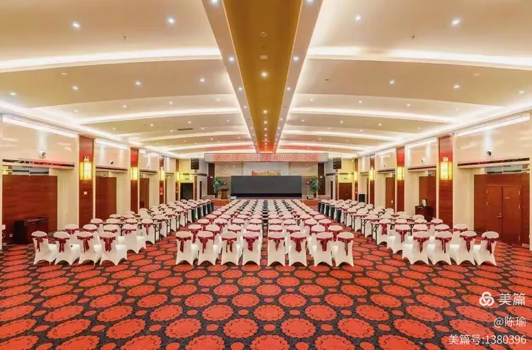 五楼福海宴会厅,可容纳16桌婚宴或100人的课桌会议