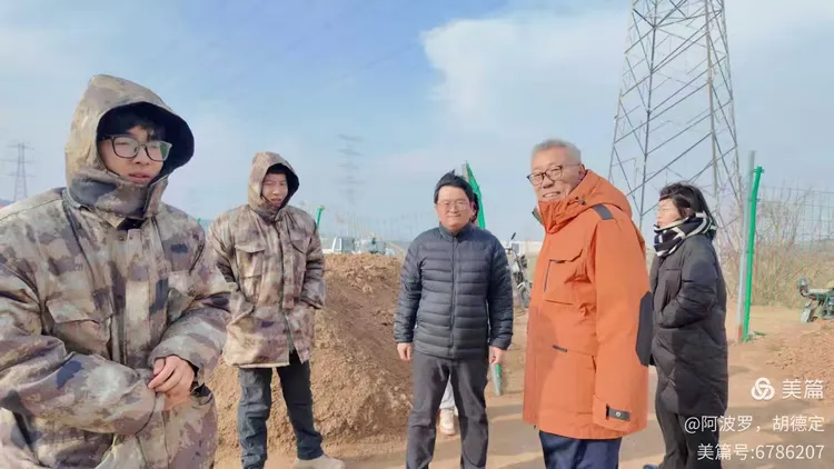 考查现场风大天冷,考查中董会长和年轻的在考查队员合影留念,勉励大家努力加油,为中国先秦长城考古做出新的贡献,有突破性发现,