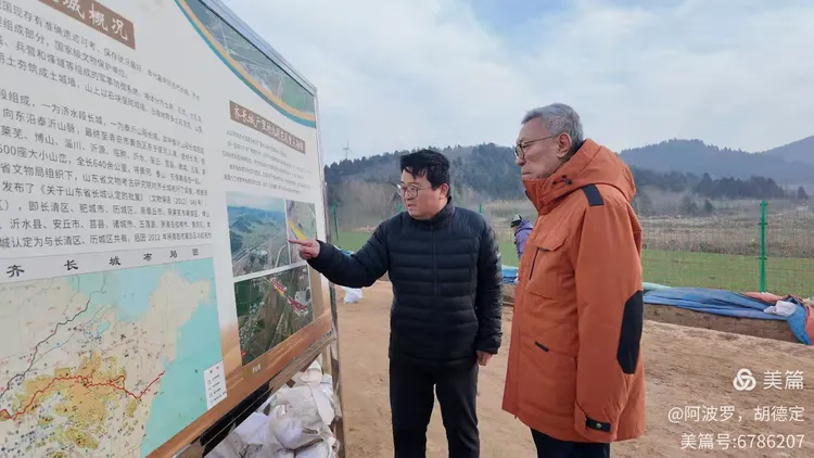 齐长城源头考古发现,齐长城始建于周和春秋间,把齐长城始建年代提前到公元前八百多年,董耀会付会长现场考查。