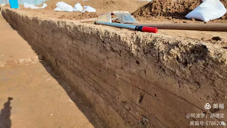 在春秋一期遗址下,仔细观看。从夯土文化层,夯窝中确认城墙的适筑年代,