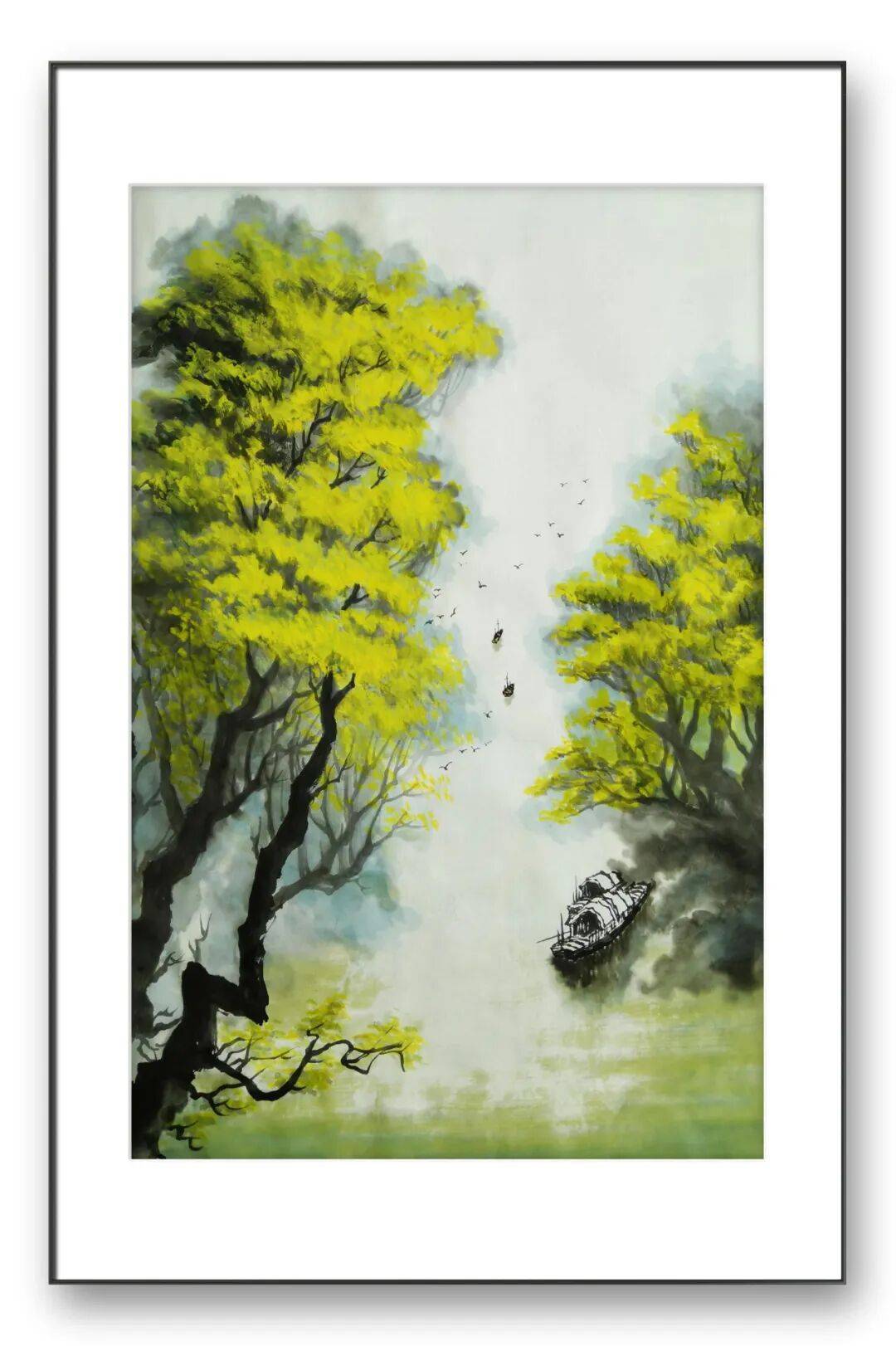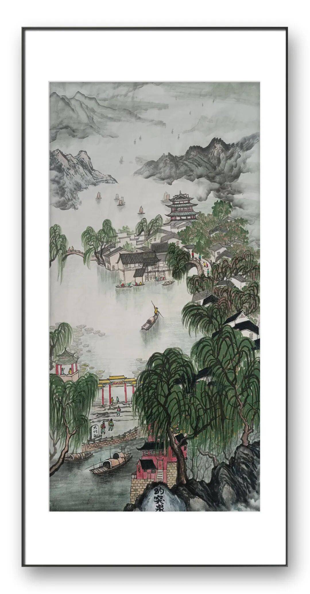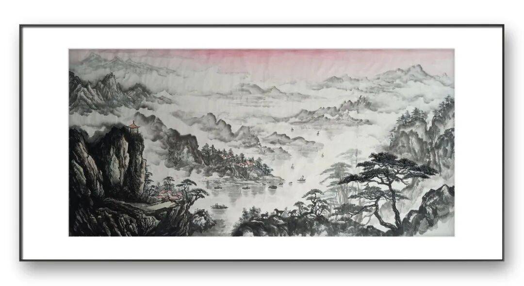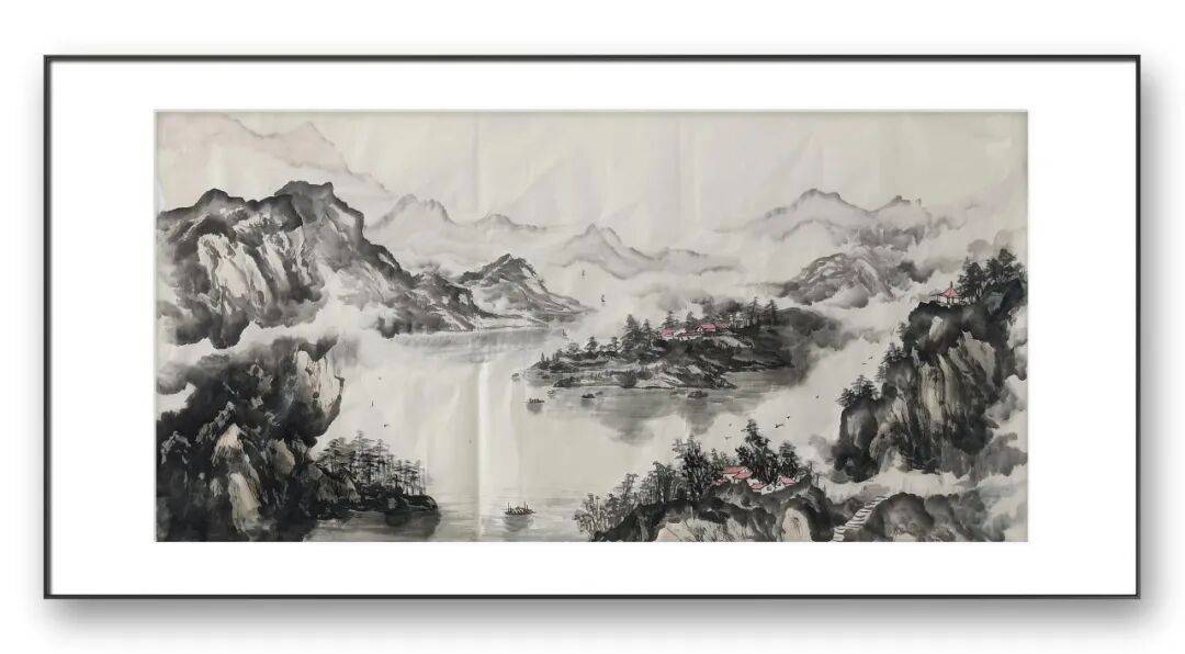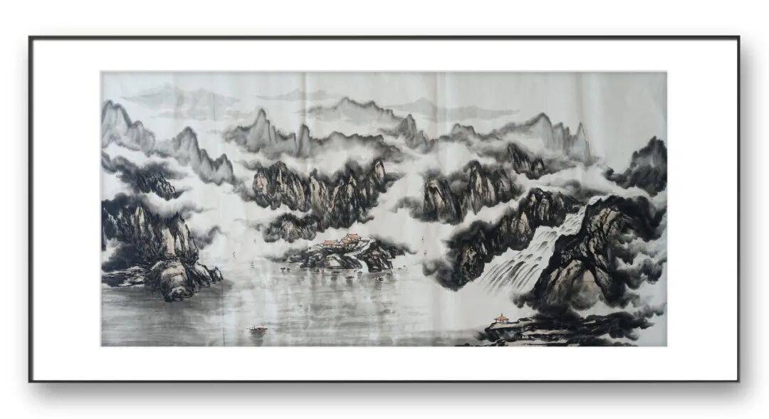 在他的作品中,我们能清晰感受到地域山水的独特韵味。若是描绘南方山水,他便以细腻的线条勾勒出江南水乡的温婉灵动,以淡雅的青绿色调渲染出草木的繁茂与云水的氤氲,画面中常见小桥流水、烟雨人家、茂林修竹等元素,营造出清新婉约、宁静祥和的意境,如江南烟雨图中,淡淡的墨色与清雅的绿色相互交融,线条轻柔舒缓,将江南水乡细雨蒙蒙、雾气氤氲的景象描绘得淋漓尽致,让人仿佛置身于诗情画意的江南景致之中。若是刻画北方山水,他则会调整笔墨语言,以更为刚劲厚重的线条勾勒山峦的雄峻轮廓,以沉稳的赭石、墨色渲染山石的厚重质感,画面多展现奇峰峻岭、苍松翠柏、云海翻腾的景象,营造出雄浑壮阔、气势磅礴的意境,如太行雄姿中,线条顿挫有力,墨色浓淡对比鲜明,将太行山的巍峨险峻、雄浑苍茫展现得酣畅淋漓,尽显北方山水的豪迈气概。