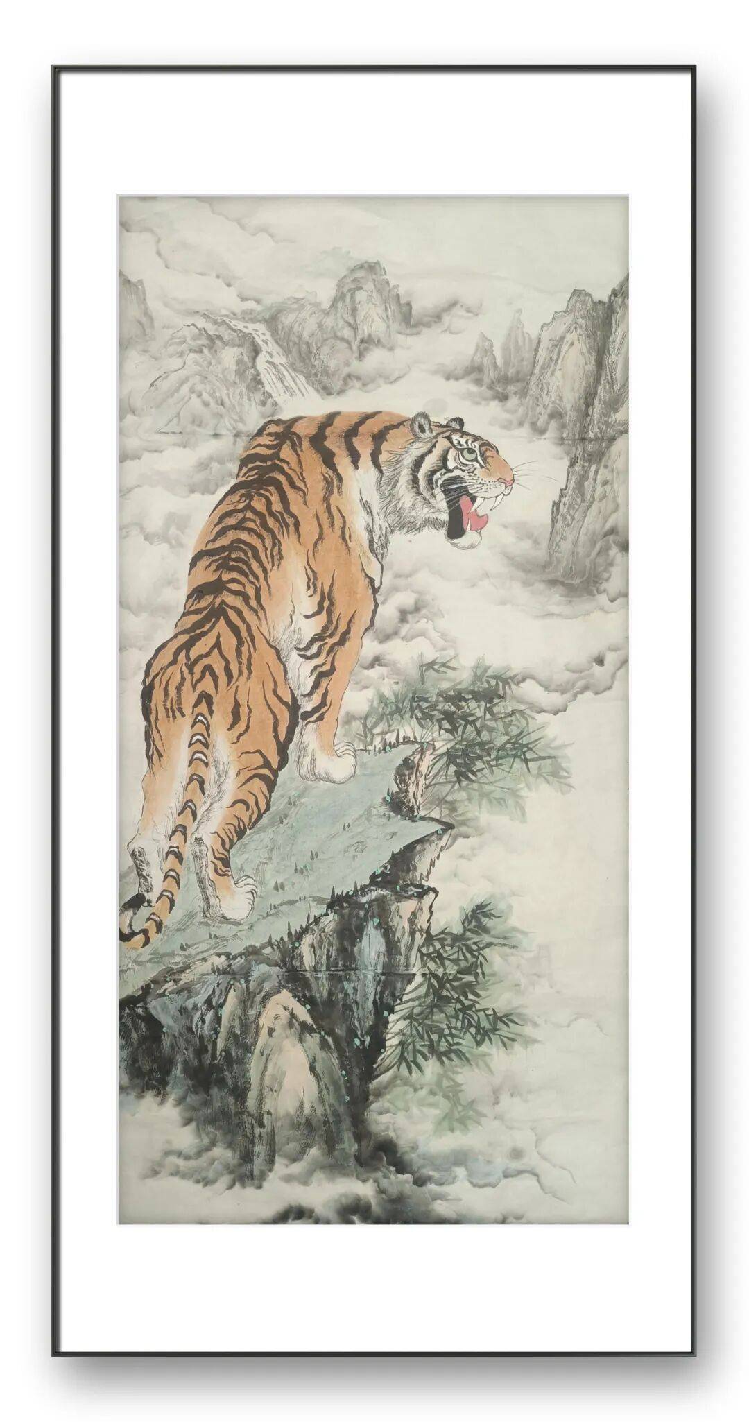刘延华先生画虎,渊源有自,累以功夫。其笔下的虎,精致逼真,细微之处绵密浑厚,直见笔墨;境生意外,透发出空灵自然之趣,悠远静寂,虚实相生,洋溢着勃勃生机,有吟风啸月、清迥脱尘的空明之象。大写之虎,那种虎生生之硬气、霸气,使人感会到发自高山幽林的雄壮气魄,令人叹为观止。