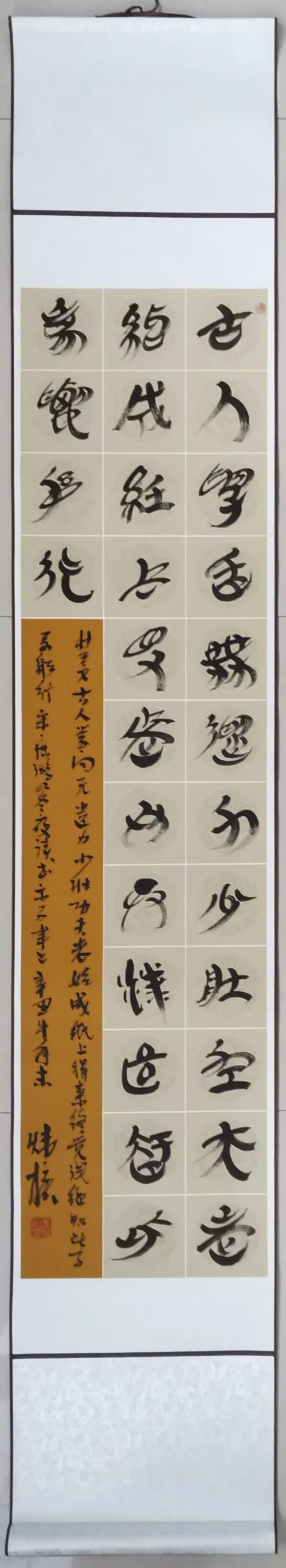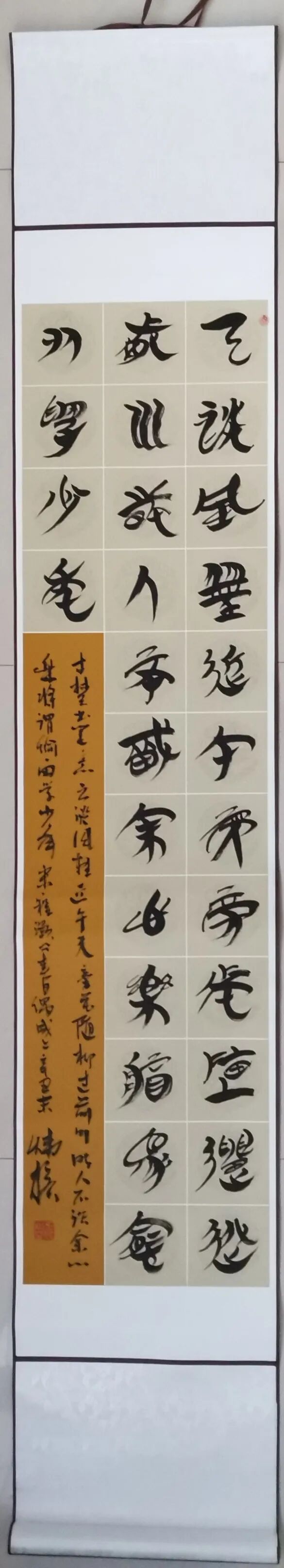 幼喜书法,初学颜、柳、欧、赵、文征明诸家。隶书初临《曹全碑》、《张迁碑》,《石门颂》,尤爱金农漆书。近年,又开始对楚简书体的研究,颇得其中真味,并自成风范,隶书自成一体。