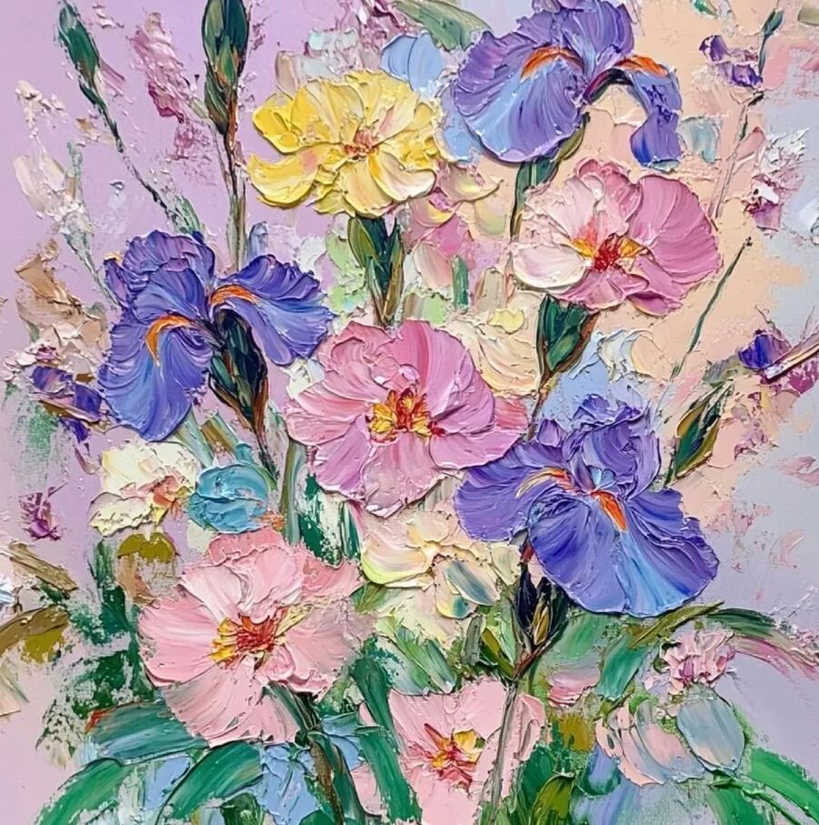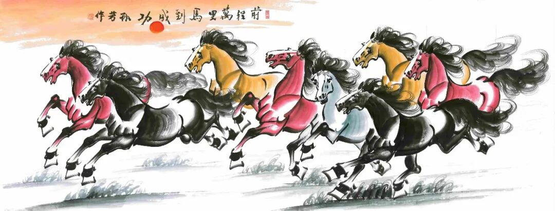 “紫气东来”的典故,为这幅山水赋予了深厚的文化底蕴。那漫卷的云霞不仅是视觉上的美景,更象征着祥瑞与福运,与旭日的希望之意相融,让画作超越了单纯的山水描摹,成为对美好生活的寄望。画家以传统笔墨为骨,却不拘泥于古式,花卉的点染鲜活灵动,色彩的运用明快却不艳俗,既保留了水墨山水的空灵意境,又贴合当代人对吉祥美学的追求,是传统与现代的巧妙融合。