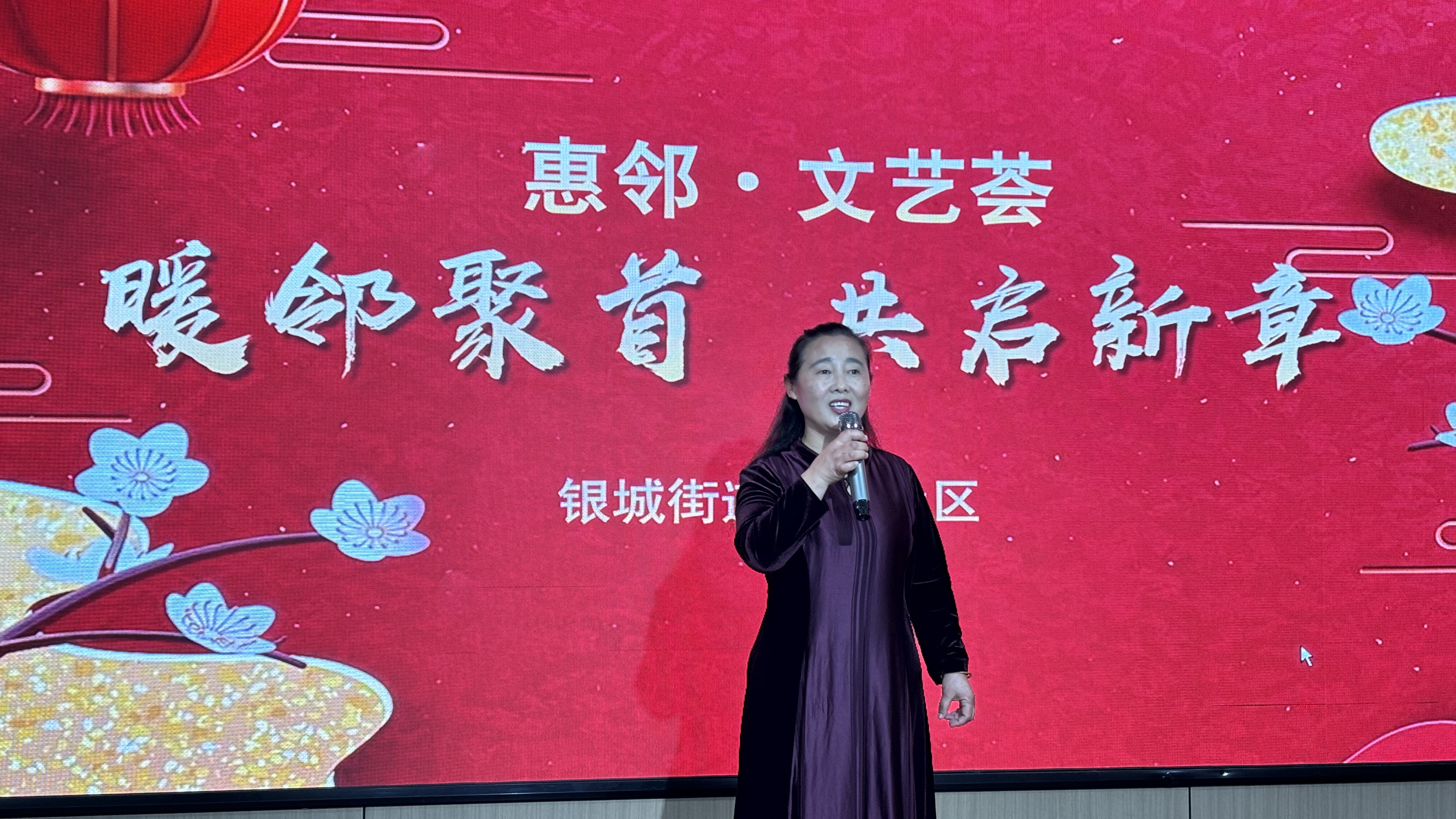 随着欢快的旋律响起,文艺演出正式拉开帷幕。整场演出以歌曲为主线,涵盖独唱、二重唱、小合唱、诗歌合诵等多种艺术形式,17个节目轮番登场,内容丰富、精彩纷呈。开场曲《美丽的家园》旋律悠扬,生动勾勒出社区宜居宜业、邻里和睦的温馨画卷,迅速点燃了现场的喜庆氛围;《如是》空灵婉转,将细腻情感融入音符,引人沉醉;《站在草原望北京》气势恢宏,唱出了对祖国繁荣昌盛的由衷赞美与深切热爱。
