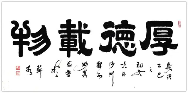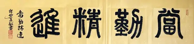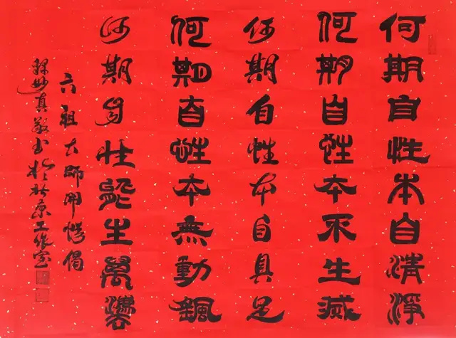 法师自幼酷爱书画艺术,自创篆书,深有妙趣。勤学博览,临帖悟道:先研唐颜柳楷书,后习汉隶名帖,得书法真谛。法师的作品浑厚凝重,苍劲古朴;隶书笔势开张,峭拔挺秀;篆书更显深厚功力,形成法度严谨、意趣盎然的风格。特别是出家为比丘尼后,法师的书法作品更加具有佛理法味和独特魅力。