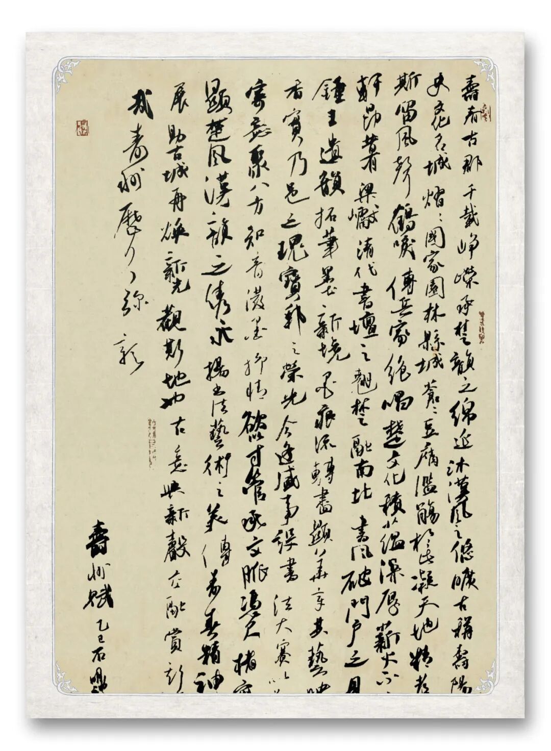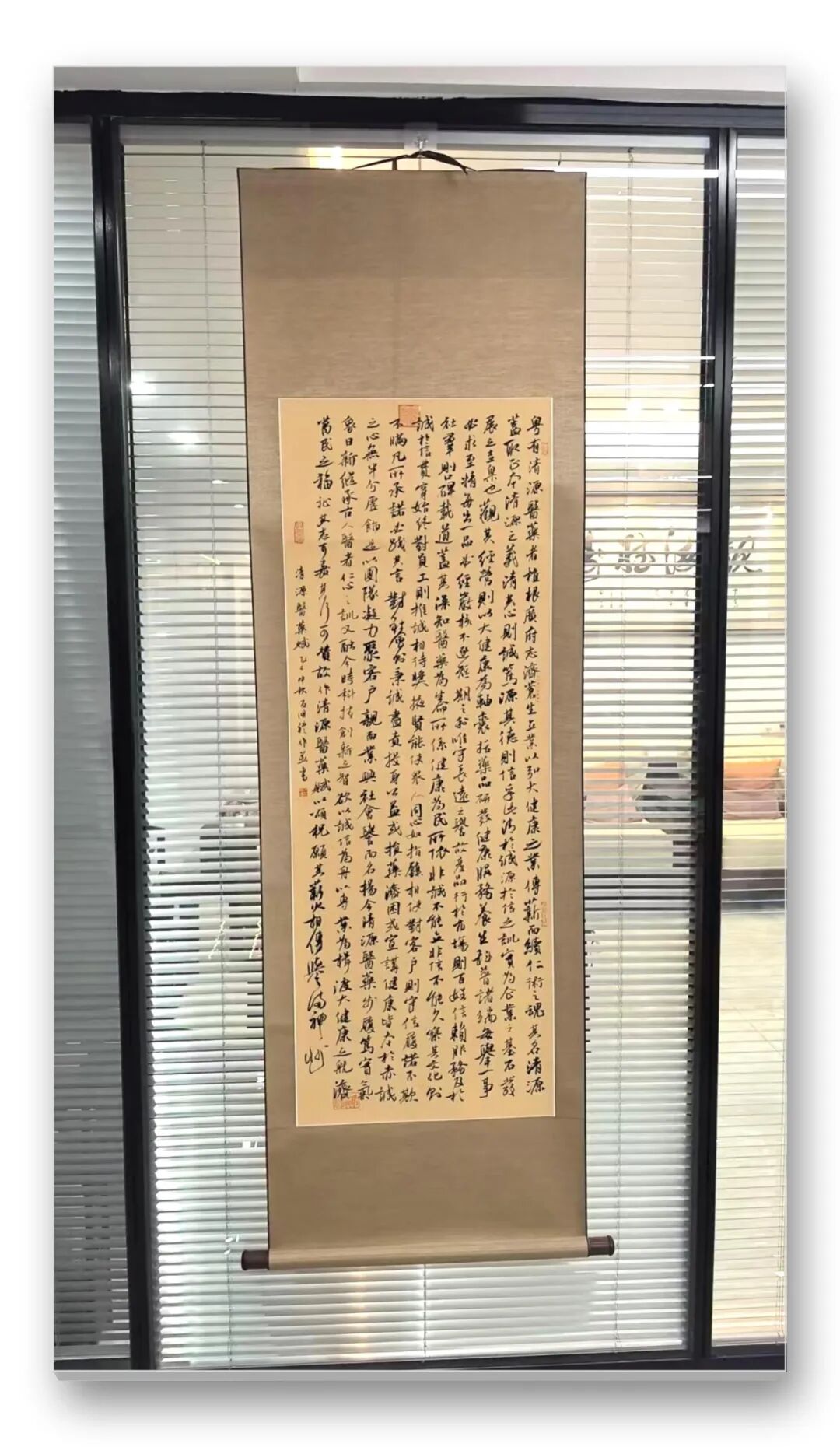 真正打动人心的,是先生笔墨背后的精神意蕴。先生于传统之中取舍有度,既汲取名家精华滋养笔墨根基,又不困于传统束缚,以多变的线条营造出兼具精神美学与视觉美学的艺术氛围。字里行间,我们既能读出笔法的精研与技巧的娴熟,更能感受到一种包容天地的博大胸襟、一种从容不迫的生命气度。这种由内而外的精神气象,让作品超越了单纯的笔墨技法展示,具备了直击人心的感染力,也使其拥有了颇高的艺术价值与收藏价值。
