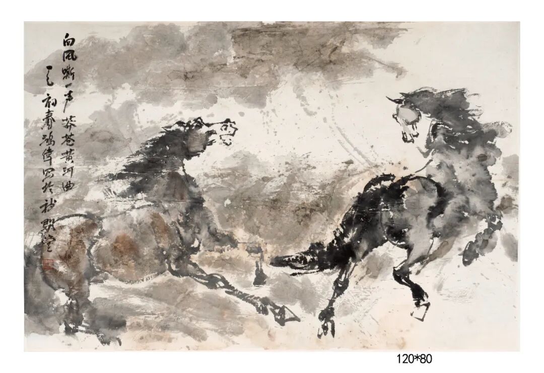向风嘶一声莽苍黄河曲 120x80cm