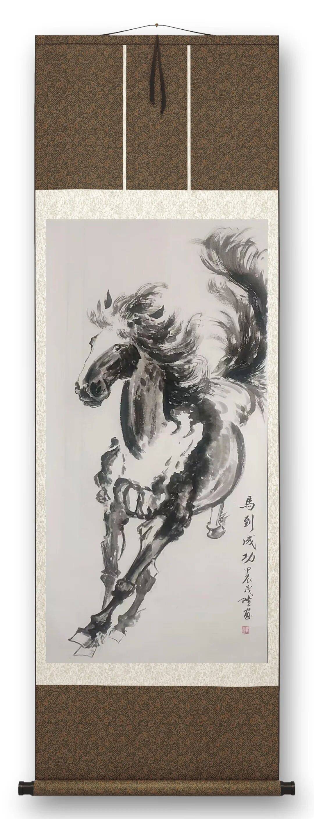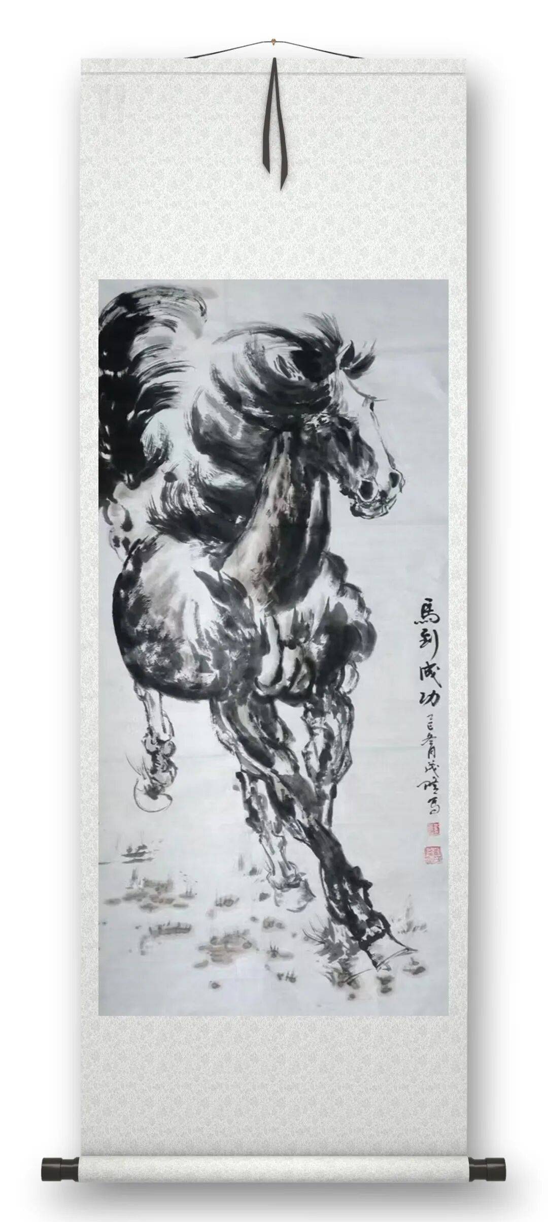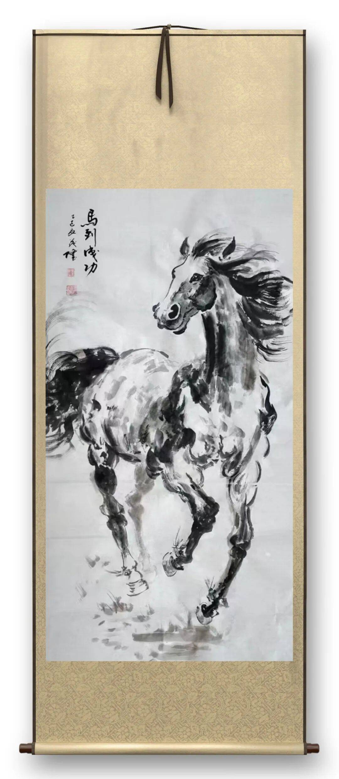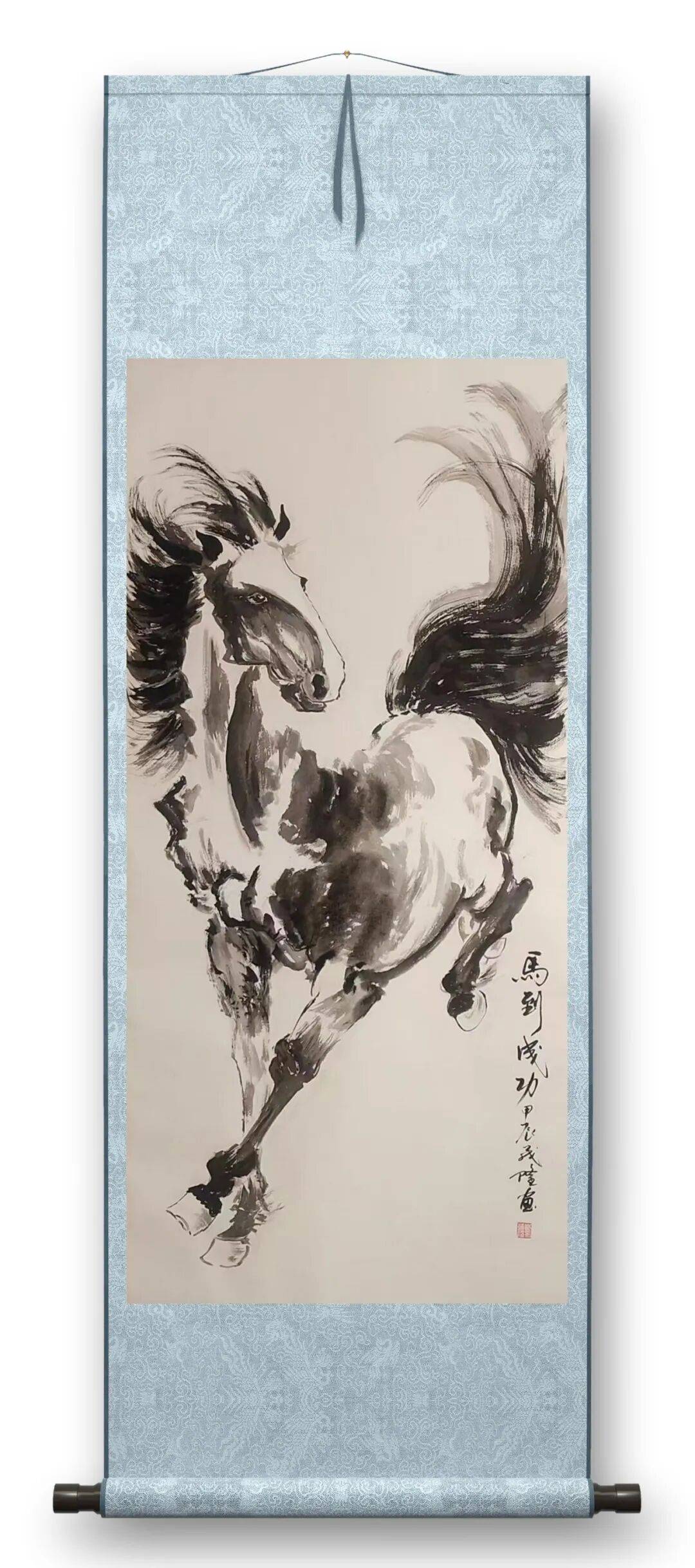 以书法为心迹,以画马为灵犀,艺术家在笔墨的游走流转间,完成了与传统文脉的深度对话,更达成了与时代精神的强烈共鸣。其笔下奔马,或昂首疾驰,或踏风而行,每一匹都鲜活灵动,皆是生命活力的生动写照;每一笔勾勒、每一划渲染,都蕴含着深厚的文化底蕴,藏纳着对艺术的赤诚坚守。作品中满溢的积极向上、开拓进取之气,恰是当下时代精神的艺术凝练。传统艺术的生命力从不在于墨守成规,而在于以古为鉴、以今为用。这些奔腾于宣纸之上的生灵,既是对千年文脉的虔诚守望,亦是对当代艺术边界的勇敢开拓,更让我们清晰看见,中国画的笔墨精神,终将在代代传承中不断创新,在持续创新中永葆生机、生生不息。