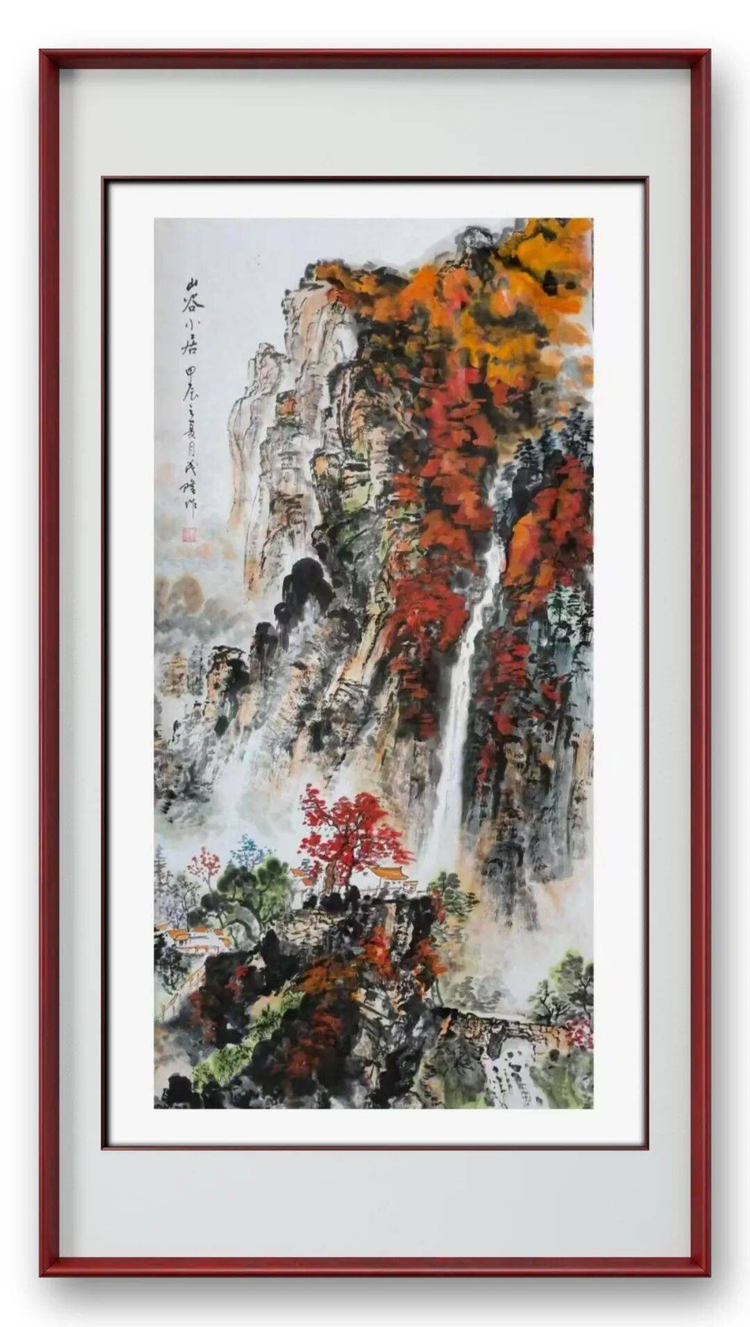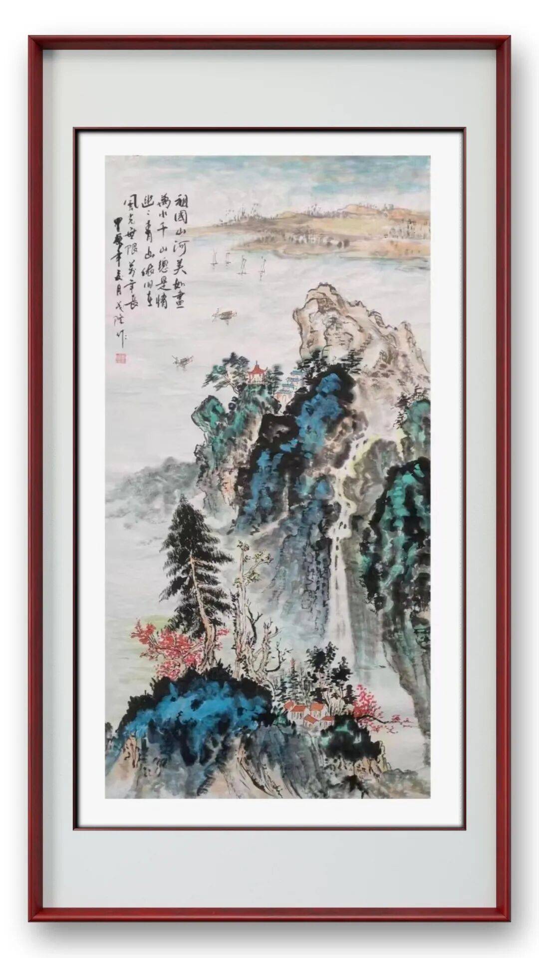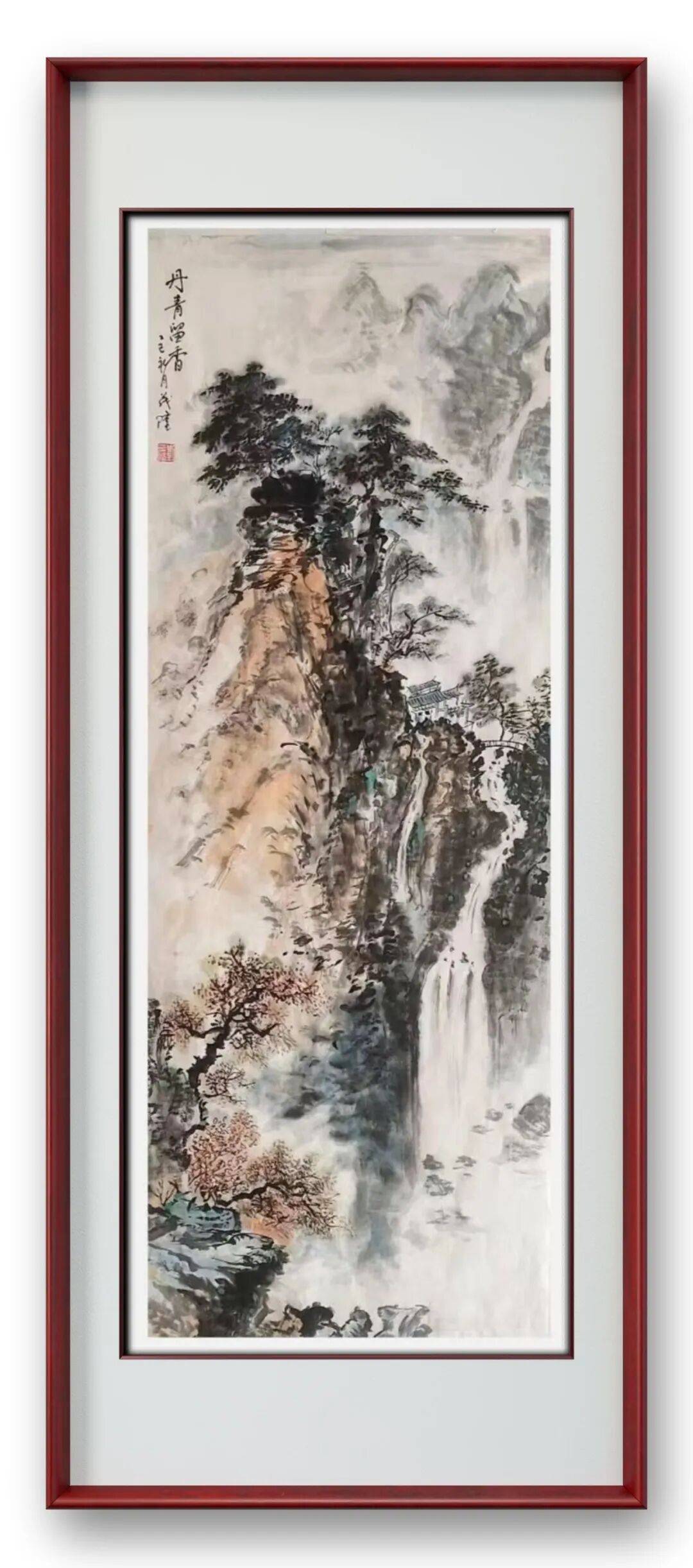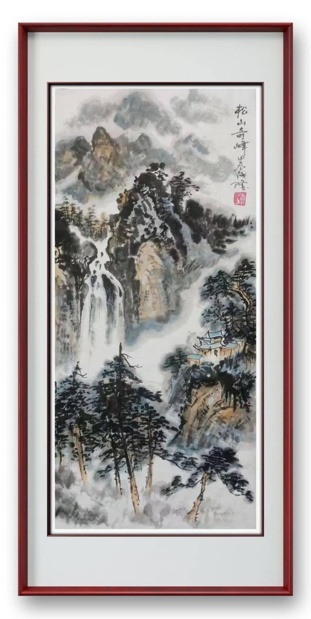 国画创作中,先生同样展现出多元的艺术才情,山水、鸡、老鹰、花鸟皆能信手拈来,且各有千秋。其山水画重意境营造,笔墨苍劲,构图大气,远山近水层次分明,或浓墨点染山峦,尽显雄浑厚重;或淡墨勾勒云水,营造悠远空灵。他并非简单描摹山水之形,而是将军旅生涯的开阔胸襟与对自然的热爱融入笔墨,让山水既有自然之灵秀,又有精神之壮阔,观者仿佛能于笔墨间感受到天地的苍茫与生命的蓬勃。