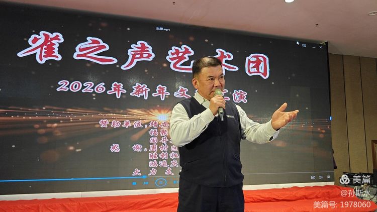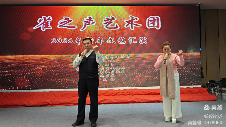 2025年12月27日下午,淄博市周村区“雀之声”艺术团2026年庆新年文艺汇演,在周村城区齐悦国际大饭店温情启幕。周村区妇女联合会主席赵迎春应邀出席。张兑村村委会、区乒乓球协会及书画、歌舞、摄影、朗诵等领域的社会各界代表齐聚一堂,共贺盛会。活动还特别迎来了来自韩国的友人金宽洙、朴珍钟先生,中外文化在艺术的交融中绽放光彩。 汇演以19个精品节目串联起一场视听盛宴,歌舞、戏曲、诗词朗诵、雷琴演奏、模特展示等多元形式轮番登场。演员们以饱满的热情与精湛的技艺,生动诠释了新时代业余文艺爱好者的精神风貌与艺术追求,赢得现场掌声不断。