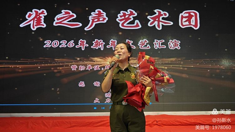 团长苗淑珍致辞并宣布:“雀之声”艺术团2026年新年文艺汇演开始。