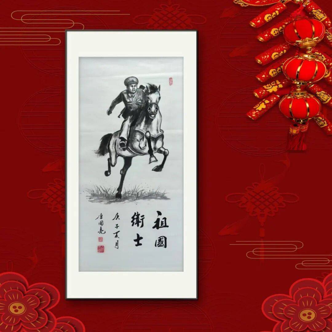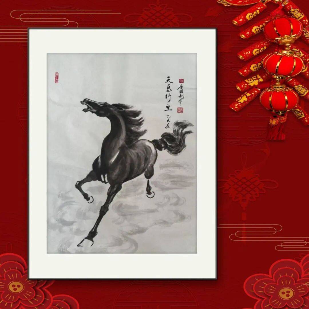而当画面聚焦于唐国亮先生笔下的马时,又别有一番韵味。那匹孤马,或昂首嘶鸣,或奋蹄疾驰,在简洁的画面中,通过寥寥数笔的水墨挥洒,便将马的桀骜不驯、自由奔放展现得淋漓尽致。他的线条,看似随意,实则蕴含着千锤百炼的功力,每一笔都精准地落在马的神韵关键处,或遒劲,或婉转,与水墨的晕染相得益彰,共同塑造出充满生命力的马的形象。