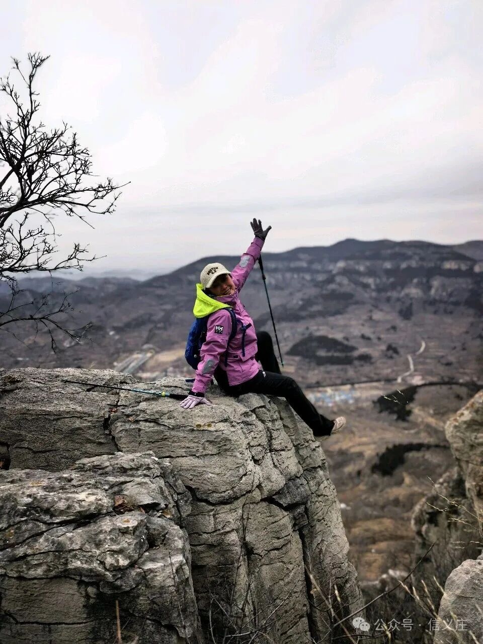 离山顶还有几十米的距离,尽管冷风劲吹,尽管心底也有片刻的犹豫,但俺还是毅然向山顶奔去。此时,队长也已走了上来,俺急忙回头呼喊一起上行,不想,队长却站在一处平台挥挥手止步不前,并大声呼喊:注意安全,不行看看就下来。