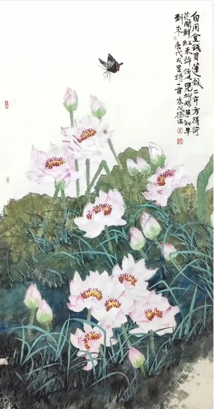 自用金钱买莲栽 138x68cm
