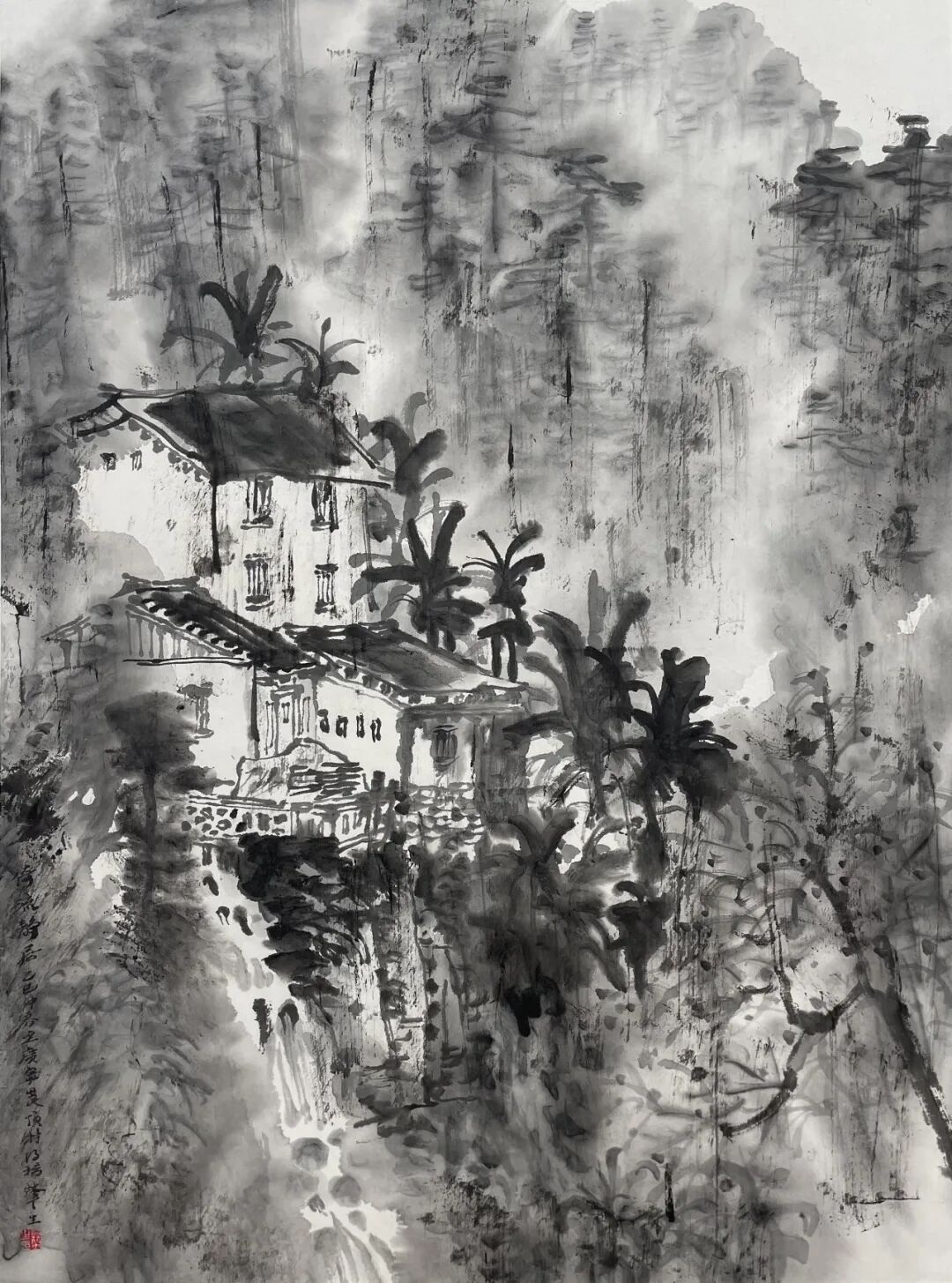 《烟雨中的和顺古镇》 46x35cm 2025 云南