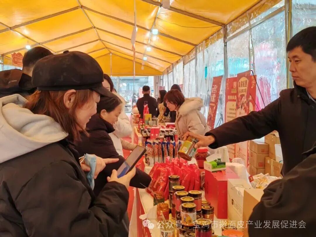 自2025年12月31日启幕以来,陈仓老街现场客流络绎不绝、热闹非凡。活动精心打造“宝鸡擀面皮市集”“老字号市集”两大核心展区,汇聚宝宝面皮、杂八得、孙大胜、小孟华等10家本土宝鸡擀面皮品牌,以及张辉面、德有邻辣椒、天缘食品等10家知名老字号企业,美酒、美食、地方特产与各类擀面皮产品集中亮相、琳琅满目,让游客一站式尽享宝鸡风味。为进一步点燃节日消费热情,活动特别推出“票根有礼”互动福利活动,消费者凭指定消费凭证即可兑换宝鸡擀面皮免费品尝券。据统计,活动期间累计兑换券面超1000张,有效拉近了企业与消费者的距离,为节日消费市场注入强劲活力。
