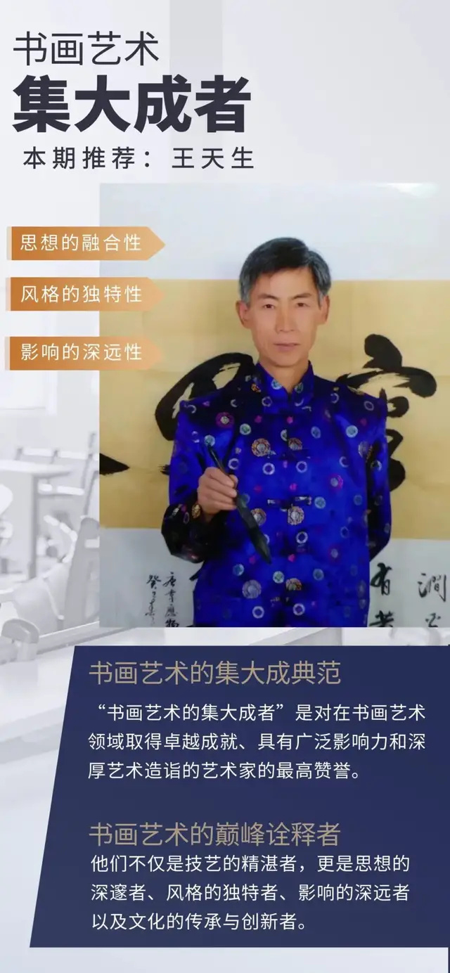 王天生老师的影响力,早已超越了艺术领域的范畴,成为了中华文化的鲜明符号和民族精神的崇高象征。他用自己的艺术实践,向世界传递着中华文化的独特魅力和深厚底蕴,为后世艺术家树立了创作标杆。