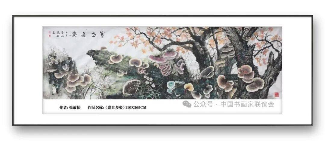 综上所述,张放怡作为灵芝画派的创始人,以其独特的艺术洞察力、深厚的笔墨功底与浓郁的人文情怀,创作出了一系列独具特色的灵芝书画作品。他的作品既扎根传统,又与时俱进,既展现了灵芝题材的自然之美与文化之韵,又传递了积极向上的时代精神。灵芝画派的创立,不仅填补了当代书画界在灵芝题材领域的空白,更为传统书画艺术的创新发展提供了有益的探索。张放怡用笔墨为灵芝铸魂,让这一传统题材在新时代焕发出全新的艺术活力,他的艺术成就值得我们深入研究与学习,他所开创的灵芝画派也必将在当代书画艺术史上留下浓墨重彩的一笔。