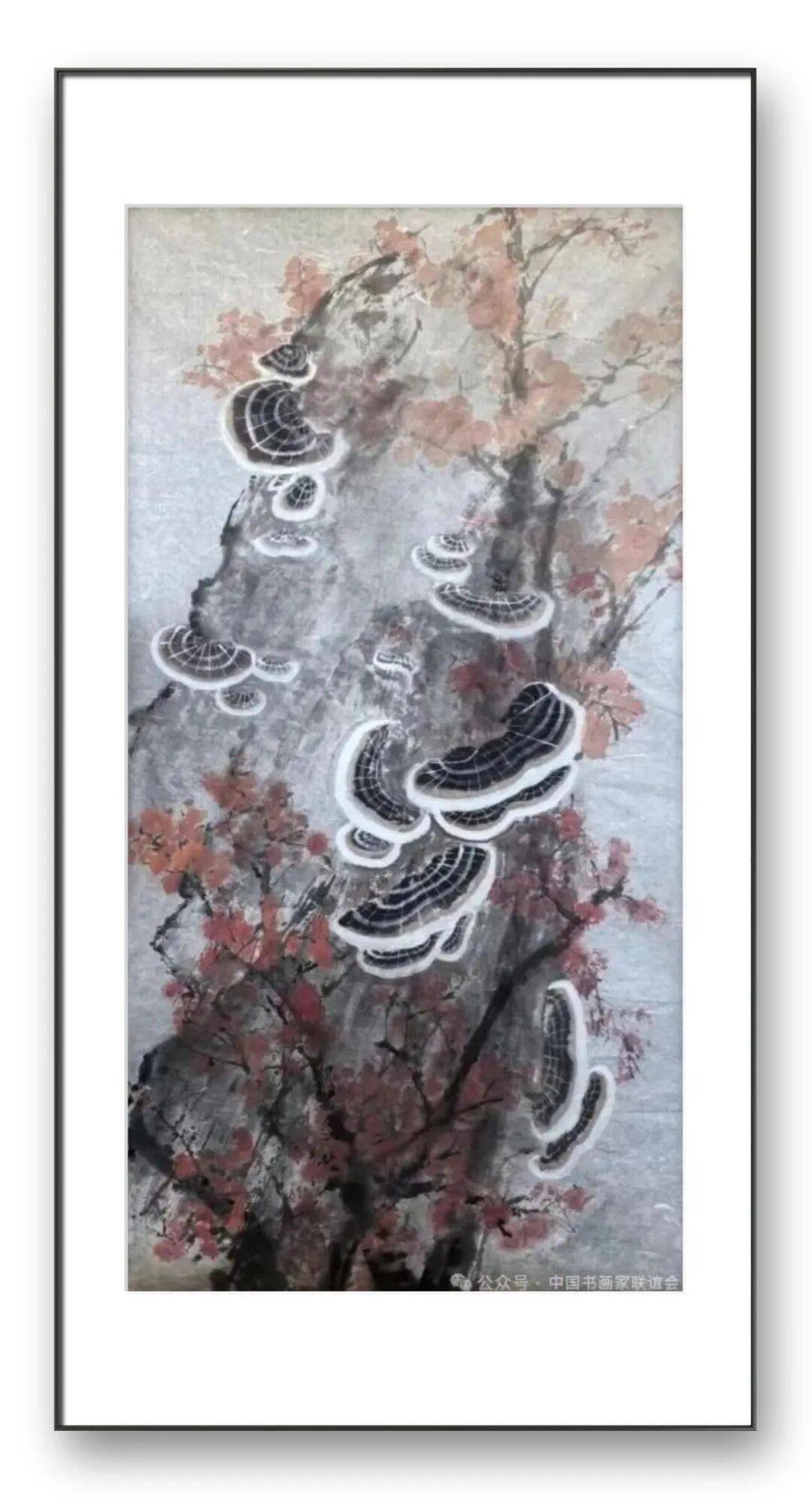 观其灵芝画作,线条或刚劲挺拔,如铁画银钩,展现出灵芝的坚韧质感;或婉转流畅,如行云流水,勾勒出灵芝的舒展姿态。在墨色的运用上,张放怡深谙“墨分五色”的精髓,通过焦、浓、重、淡、清的巧妙搭配,营造出丰富的层次感与空间感。他笔下的灵芝菌盖,墨色浓淡相间,过渡自然,既表现出灵芝的肌理质感,又赋予其饱满的体积感;菌柄则墨色通透,线条流畅,与菌盖形成鲜明的对比,使整个画面主次分明,错落有致。同时,他还善于运用积墨、破墨等技法,让墨色在宣纸上自然晕染、交融,产生出变幻无穷的艺术效果,使灵芝仿佛生长于云雾缭绕的仙境之中,充满了灵秀之气。