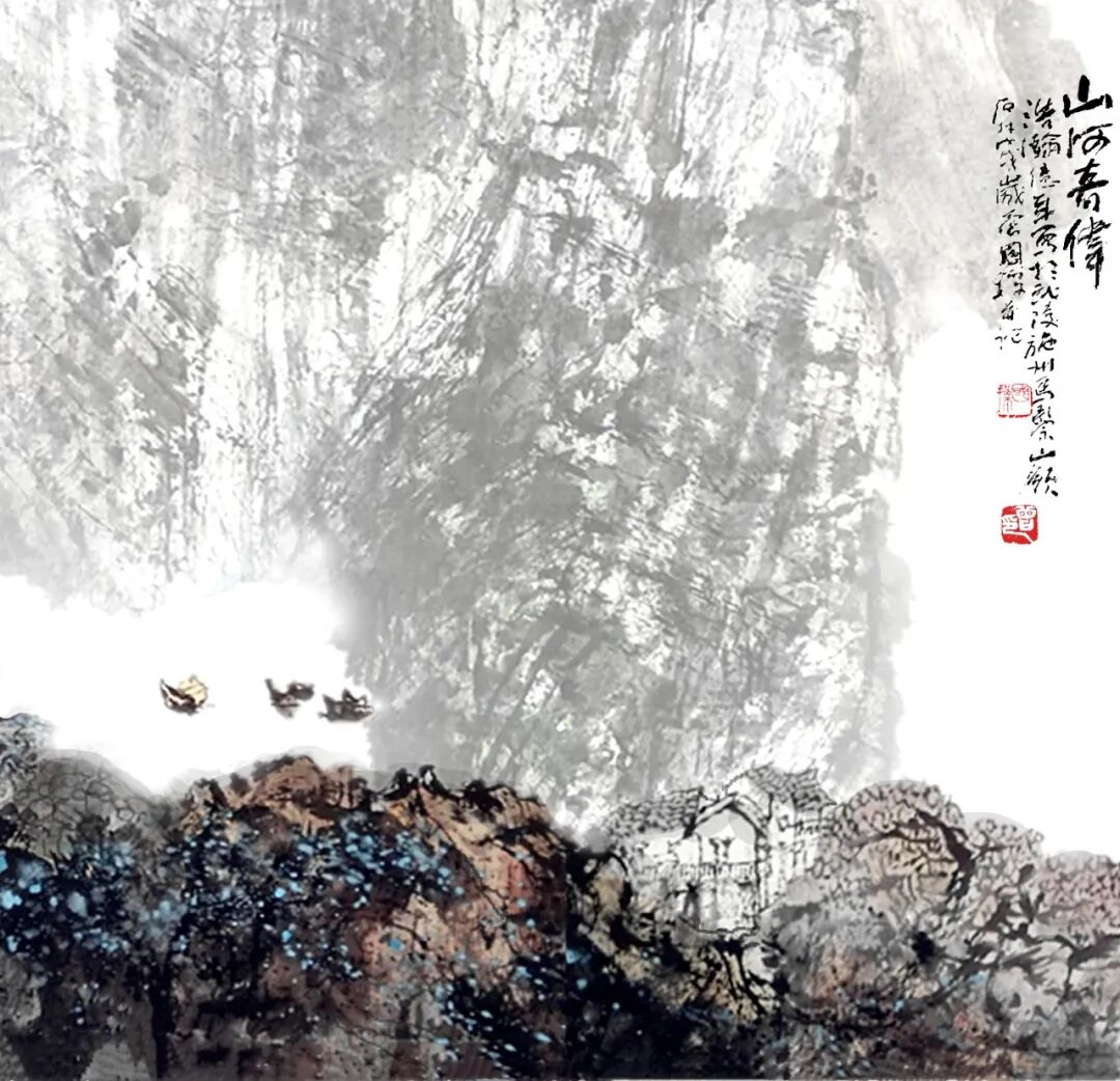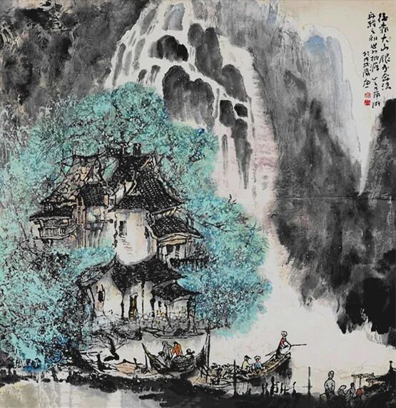 《兰色的清江》(中国画)56CMx56CM