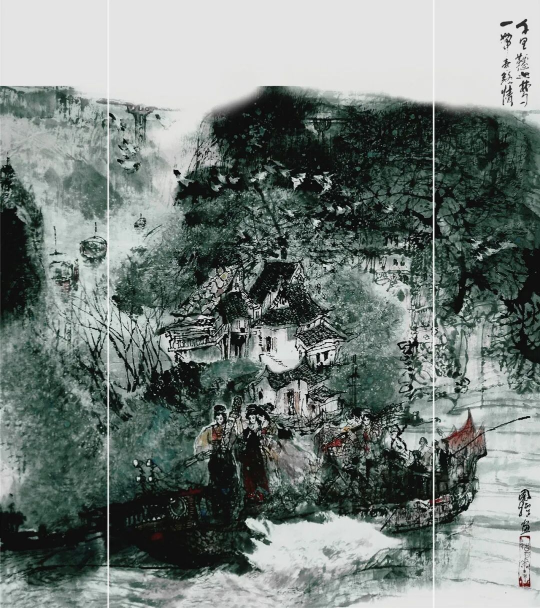 《水上人家》(中国画)68CMX68CM