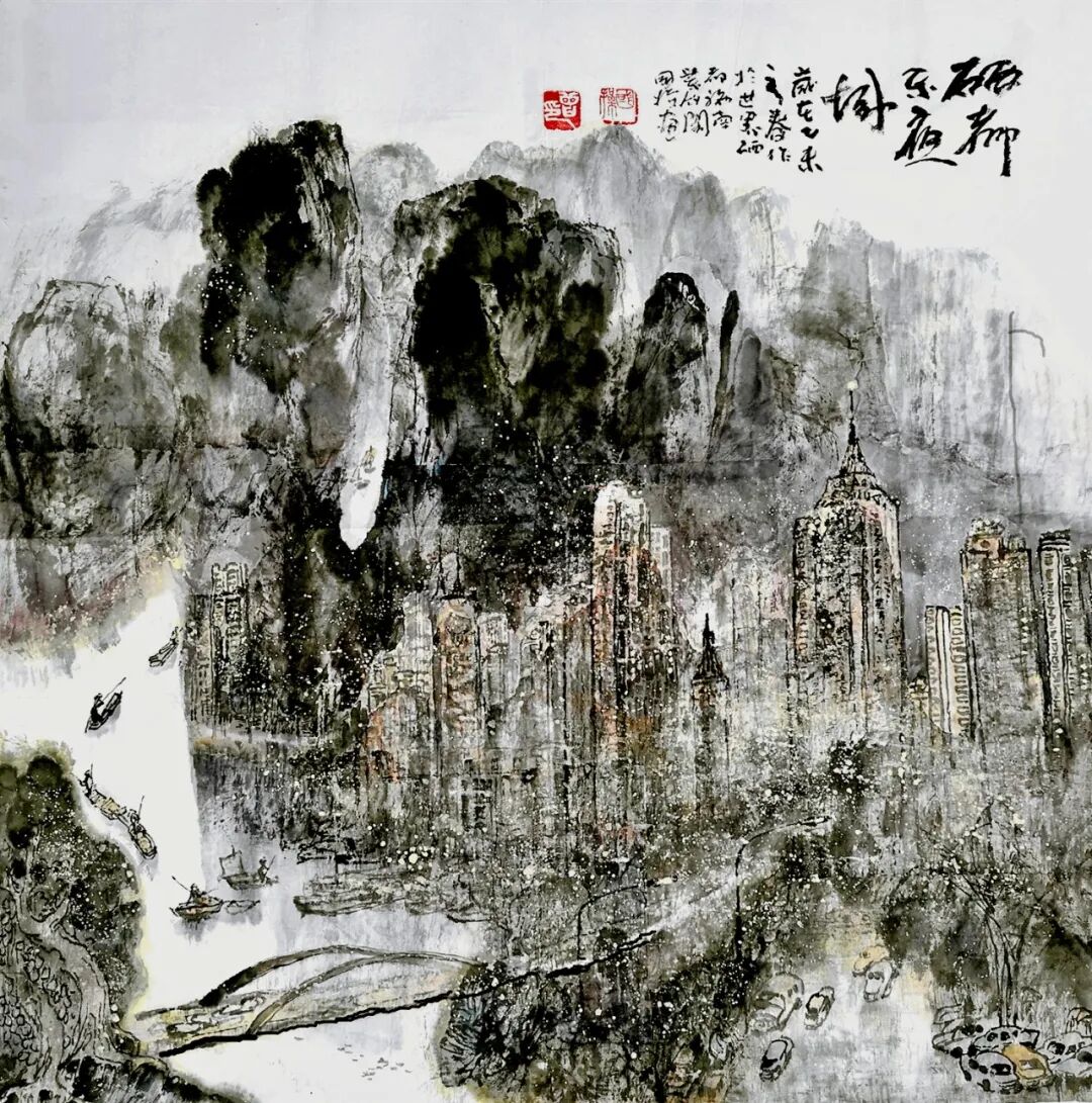 《硒都不夜城》(中国画)68CMX50CM