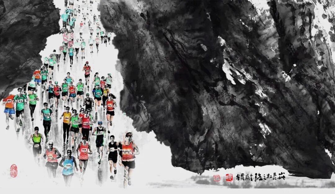 《山地马拉松》中国画64CMX44CM