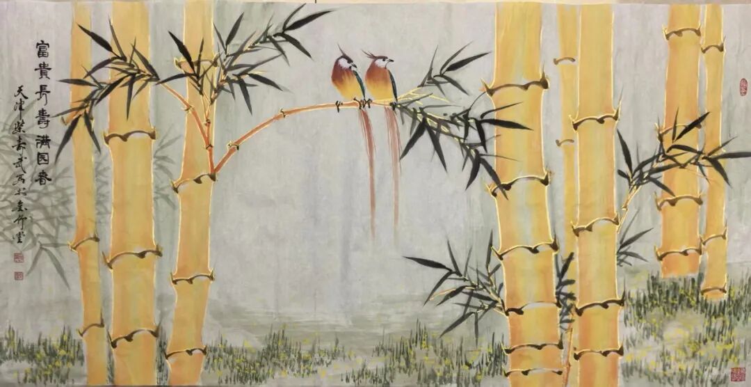 五十多年来,柴寿武先生秉承母校南开大学“允公允能 日新月异”的校训,在继承中国书画艺术优良传统的基础上不断探索创新。自1985年春天他在广西柳州发现金竹开始,历经四十年的彩墨耕耘,首创了歌颂祖国繁荣、寓意富贵吉祥的金竹国画。